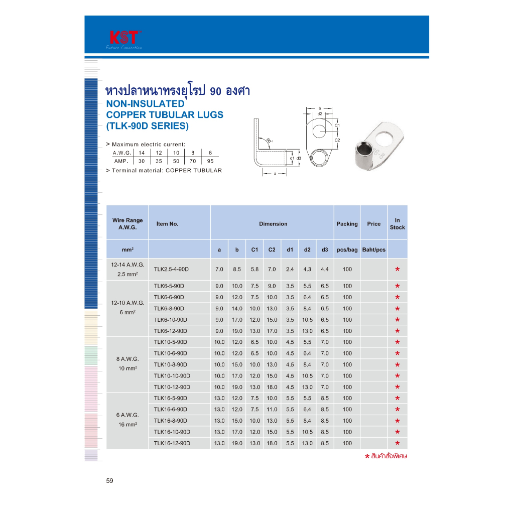หางปลาหนาทรงยูโรป90องศา KST TLK