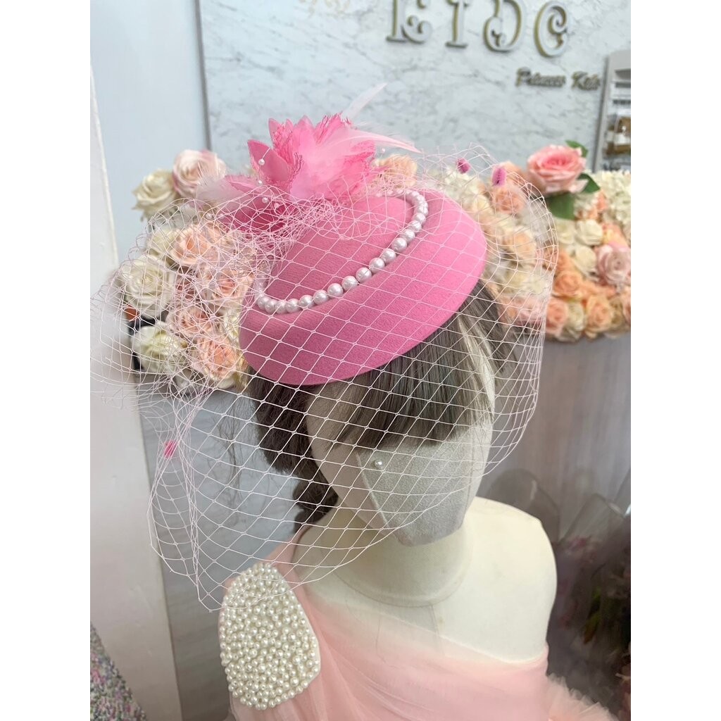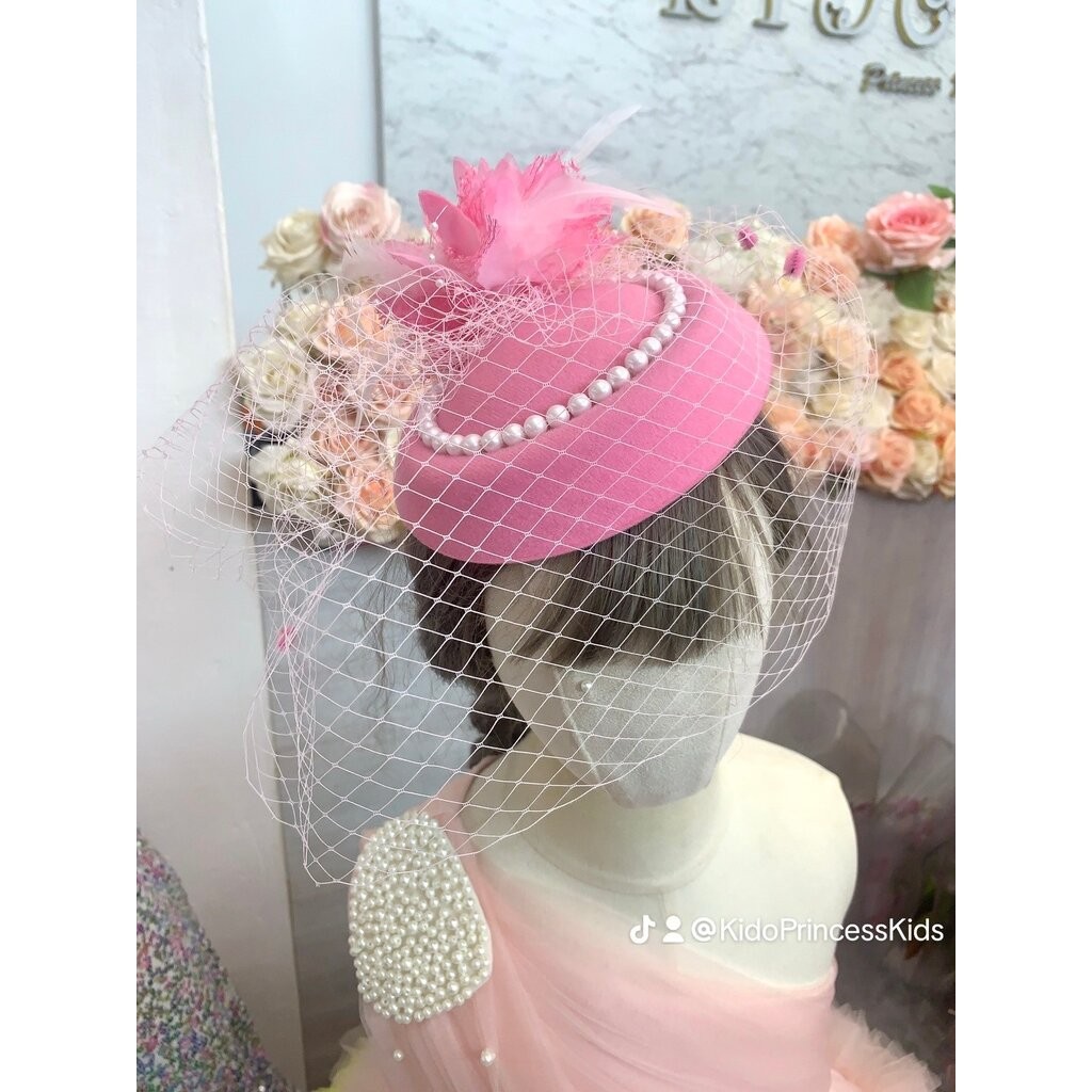 กิ๊บหมวกเด็ก(หน้าร้านอยู่รัชดา)KF596 กิ๊บหมวกเด็กสีชมพูตาข่ายติดไข่มุขประดับดอกไม้
