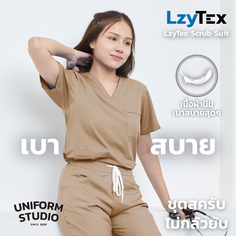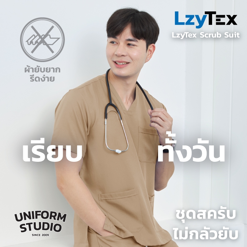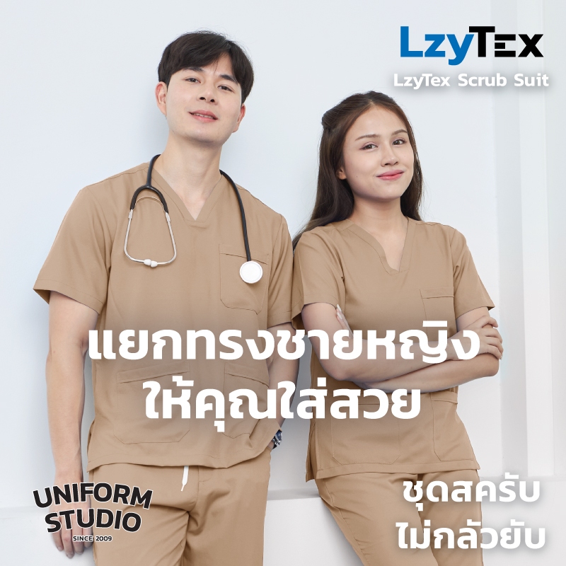 Uniform Studio ชุดสครับ Scrub ไม่กลัวยับ LzyTex สีเดสเซิร์ท Desert ชาย หญิง (Anti UV)