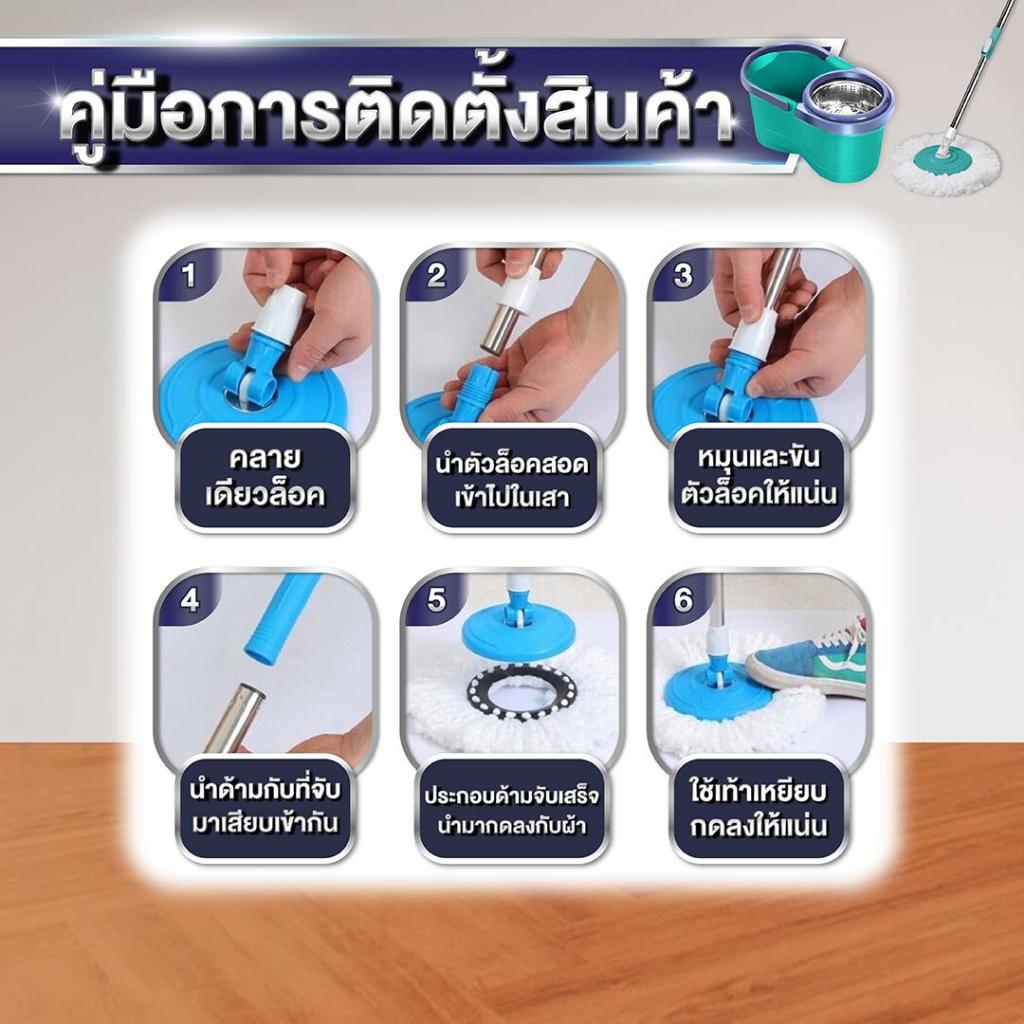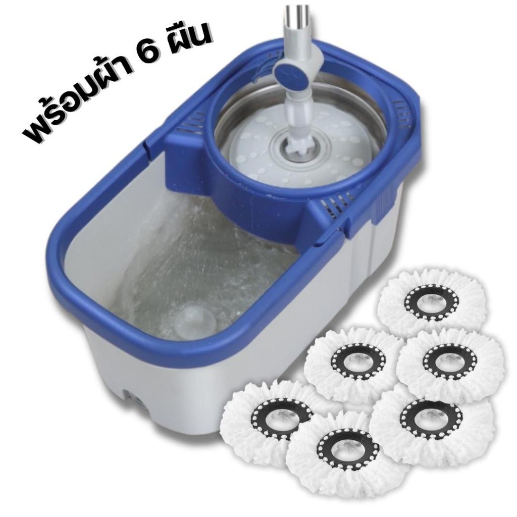 [ลูกค้าใหม่จ่าย 1 บาท] ไม้ถูพื้นพร้อมถังปั่น ผ้า 6 ผืน มีล้อเลื่อนอเนกประสงค์ ทำความสะอาด Clean Cotton