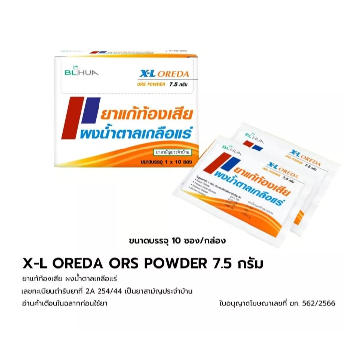 #สามัญประจำบ้าน X-L Oreda ORS ผงน้ำตาลเกลือแร่ 5.5 กรัม ต่อ 1 ซอง แก้ท้องเสีย ซองใหญ่ ออรีด้า