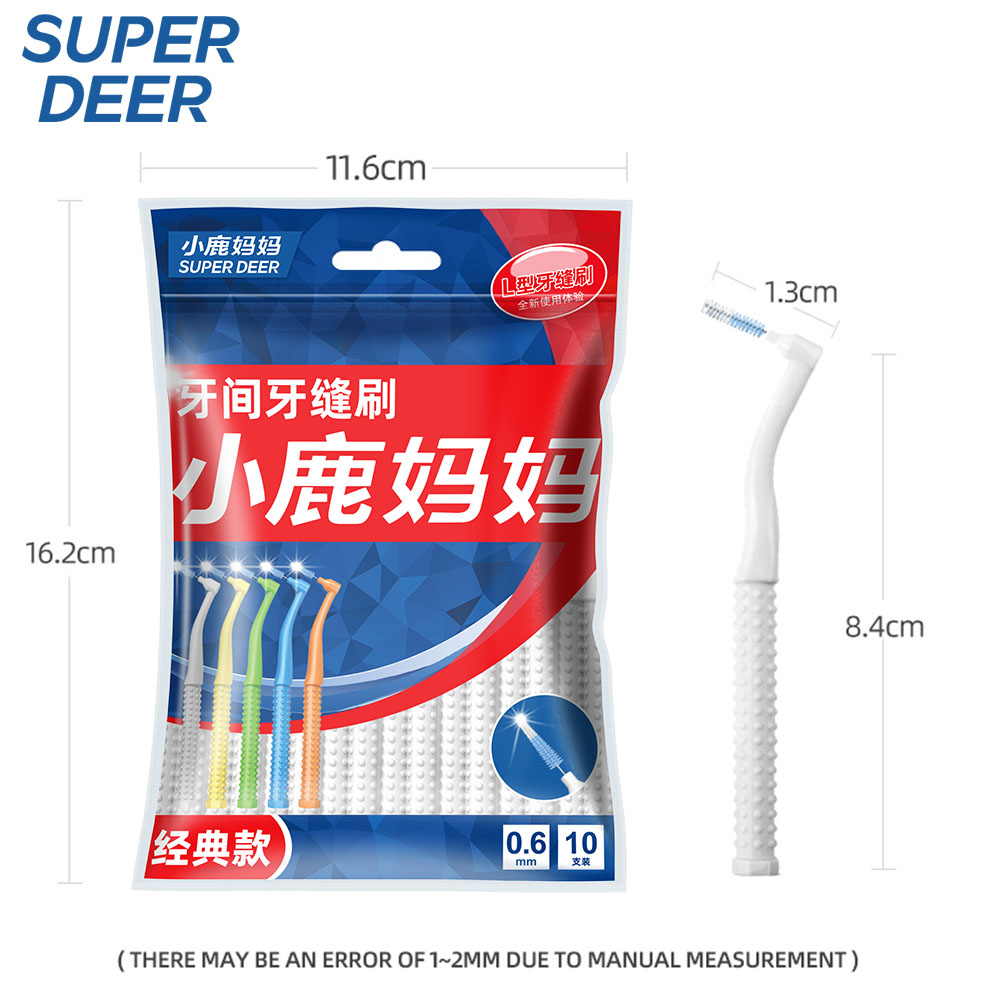 Fawnmun 10 ชิ้น/ถุง L-Shape Interdental แปรงสําหรับทันตกรรมจัดฟัน Push-Pull แปรงทําความสะอาดระหว่างฟัน Oral Hygiene Care