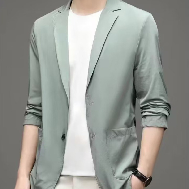 TLHGQ ชุดสูทผู้ชายขาวดําผ้าไหมน้ําแข็งเกาหลีผ้าสบายๆธุรกิจสไตล์ผู้ใหญ่ด้านบน