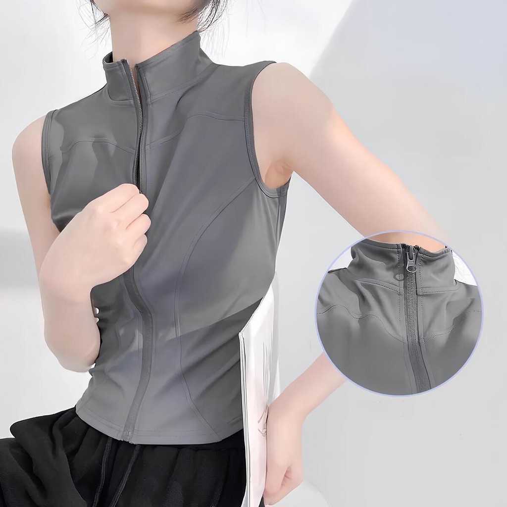 เเสื้อแจ็คเก็ตแขนกุดผู้หญิง ทรงสลิมฟิต ซิปรูด ระบายอากาศ ซับเหงื่อ ใส่สบาย S-2XL เสื้อกล้ามออกกำลังกาย ผู้หญิง