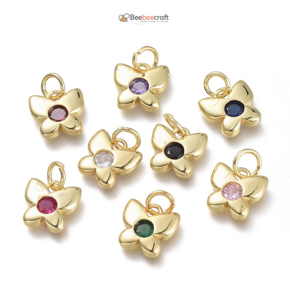 Beebeecraft จี้ทองเหลือง ประดับเพทาย รูปผีเสื้อ ดาว ชุบทอง 18K คละสี สําหรับทําเครื่องประดับ งานฝีมือ 20 ชิ้น