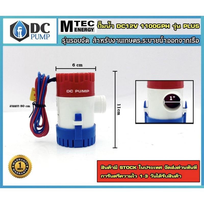 ปั้มจุ่มไดโว่โซล่าเซลล์ ปั้มน้ำโซล่าเซลล์ MTEC 1100GPH รุ่น PLUS 12VDC 120W กล่องสีแดง ปั้มน้ำ MTEC