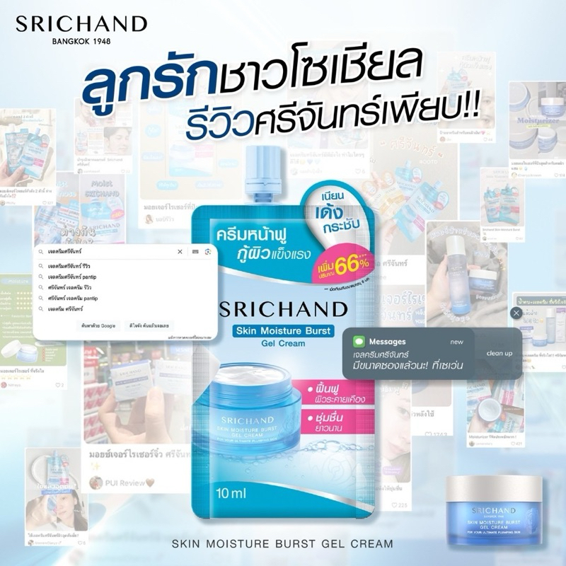 [1กล่อง]ศรีจันทร์ สกิน มอยส์เจอร์ เบิร์ส เจล (ฟ้า)ครีม 10 มล. (กล่อง 6 ซอง)