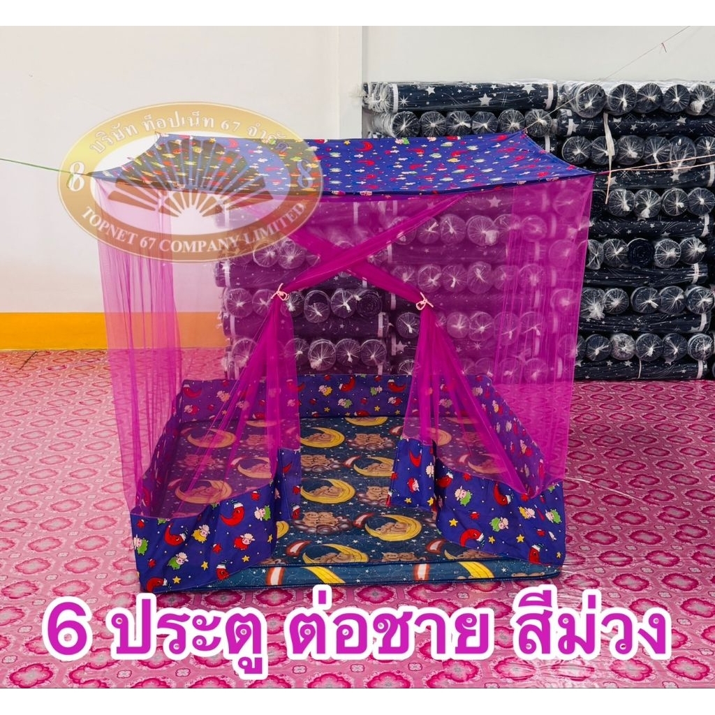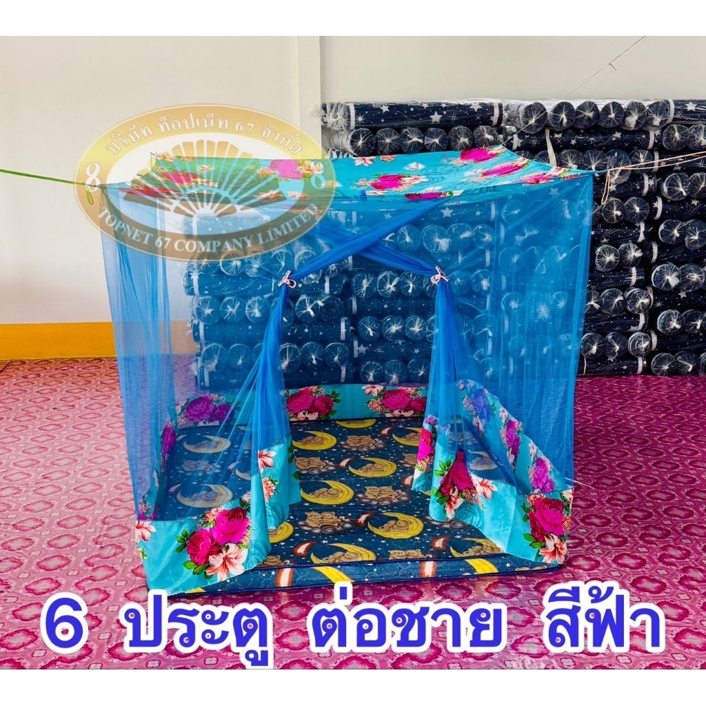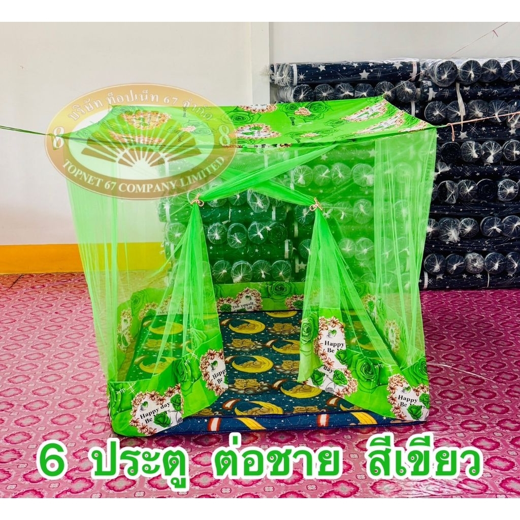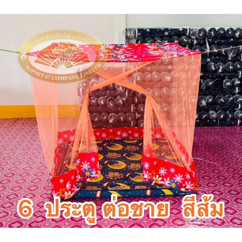 มุ้ง 6 ฟุต ประตู ต่อชาย เนื้อผ้าพริกไทย ตาถี่ นอนได้ 2-3 คน