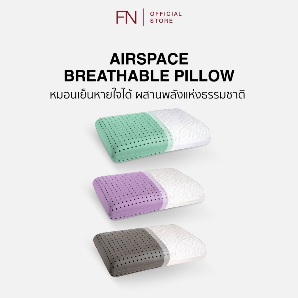 FN หมอนเมมโมรี่โฟม Ergonomic หมอนสุขภาพ มีรูระบาย 400รู รุ่น AIR SPACE มีกลิ่นช่วยในการนอนหลับได้ดี พร้อมปลอกหมอนเย็น