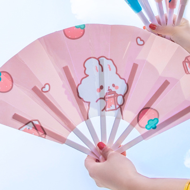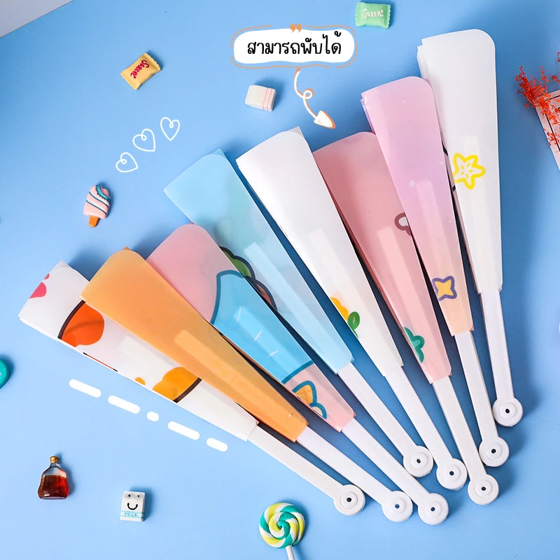 พัดจีนลายการ์ตูน (เลือกลายได้) พัดพลาสติกแบบพับได้ พัดจีน พัดพลาสติก พัด แบบพับได้