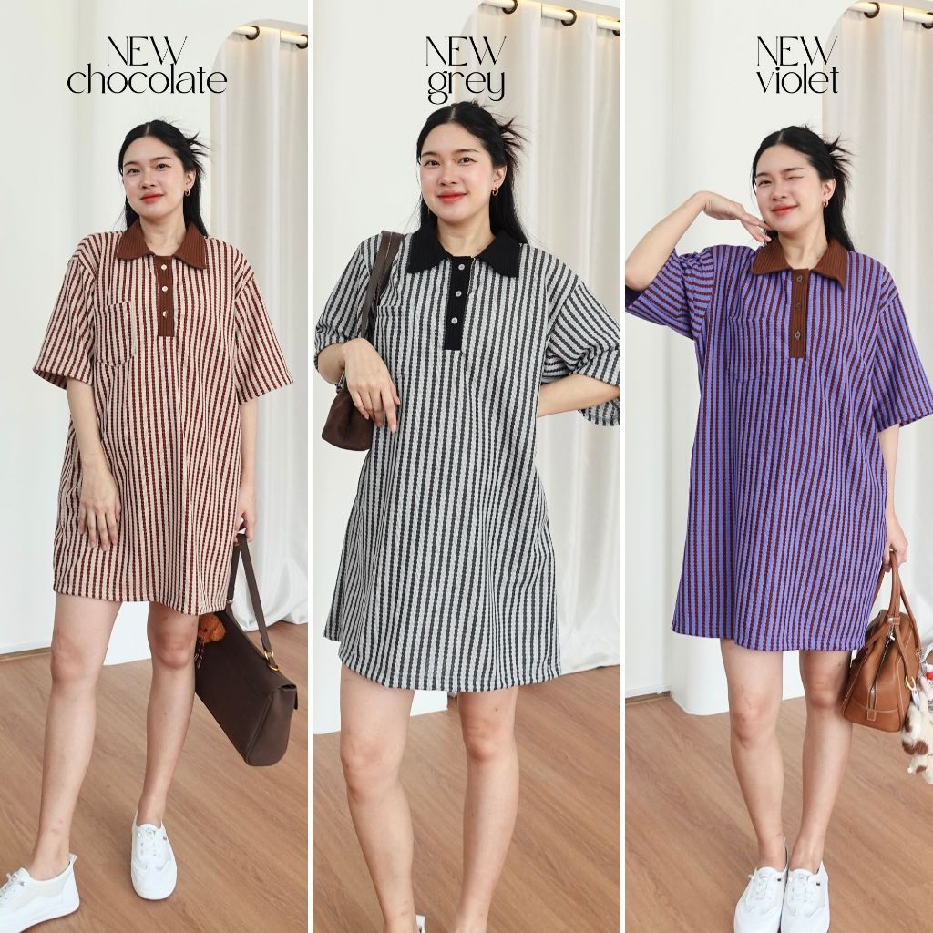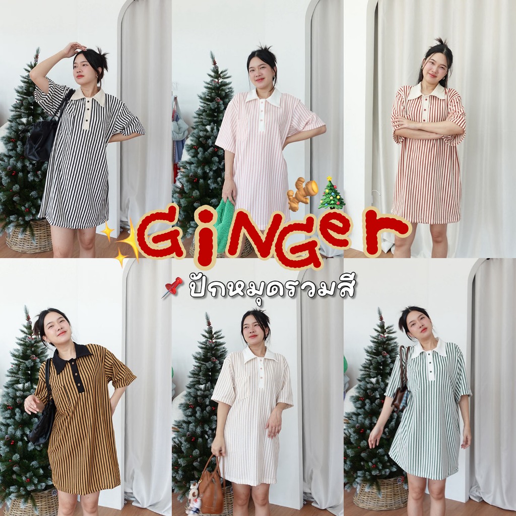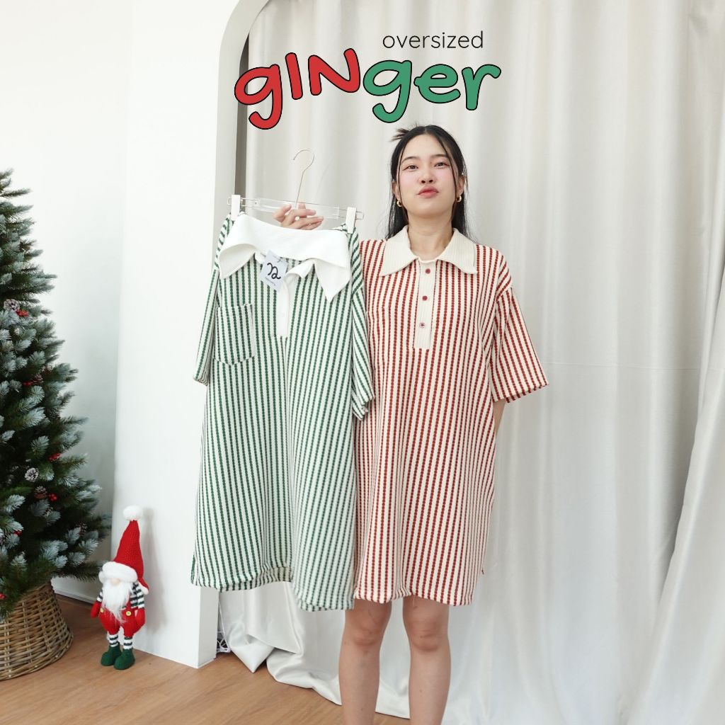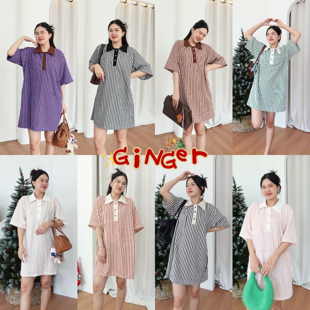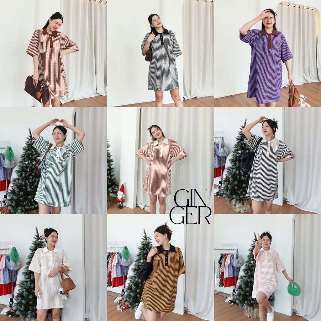 GINGER DRESS ♡︎ 8 สี เดรสทรง oversized เนื้อผ้ายืดใส่สบายมาก มีกระเป๋าล้วง คอปกโปโล