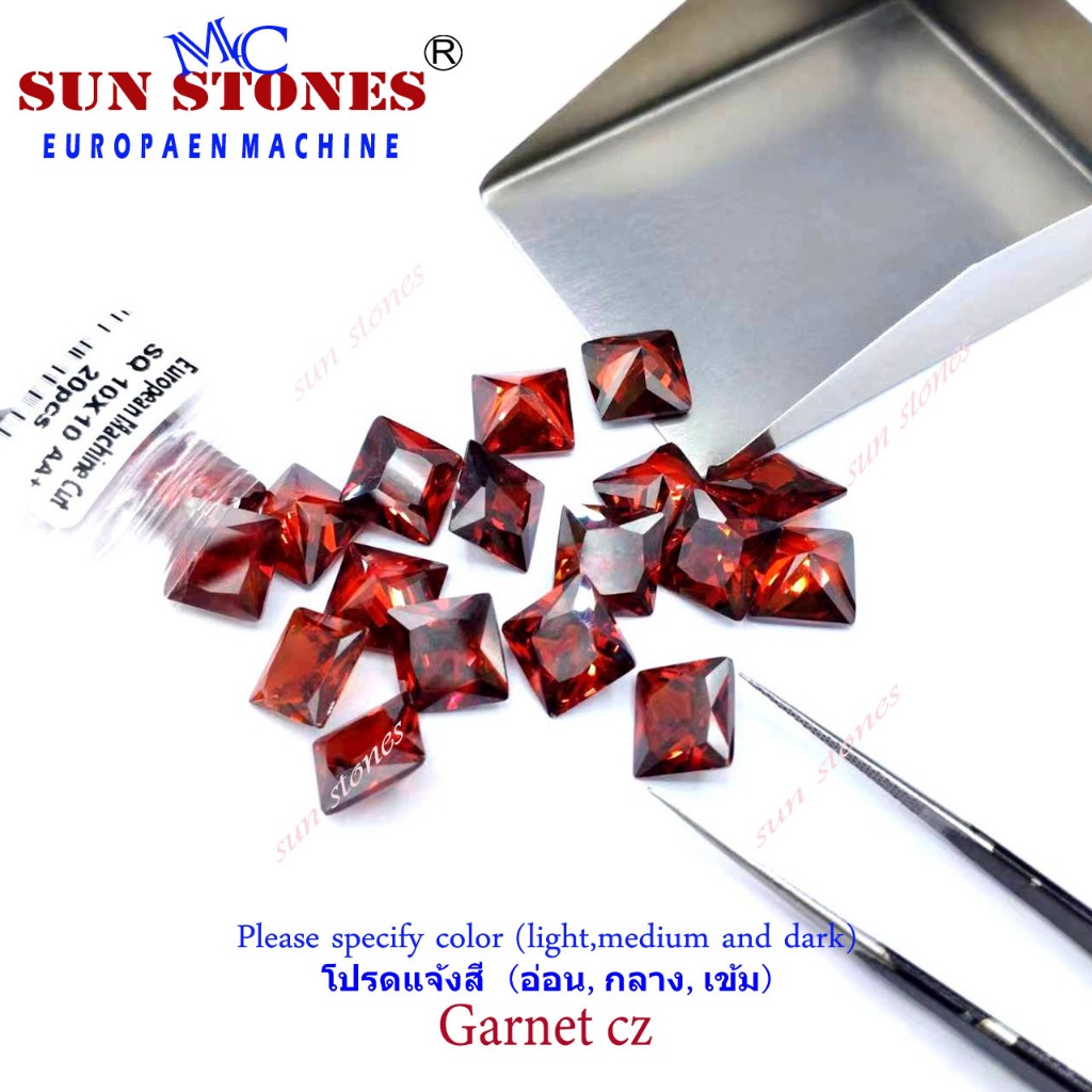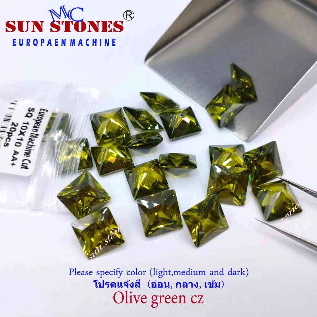 Czเพชรรัสเซียสีๆ พลอยCZ Princess Shape Color CZ, พลอยรูปสี่เหลี่ยม เจียระไนเหลี่ยมเพชร ไซส์ 2X2 ถึง 7X7