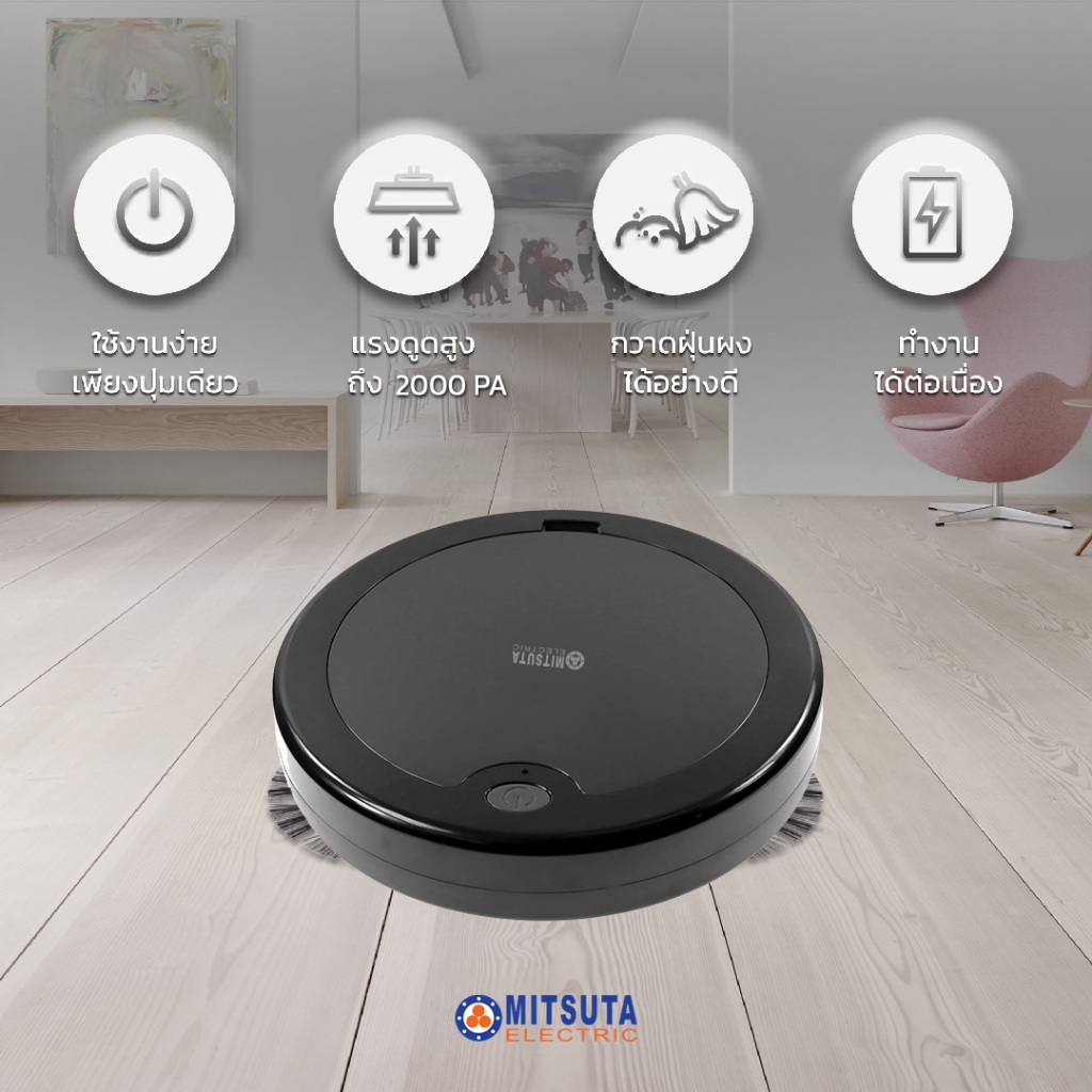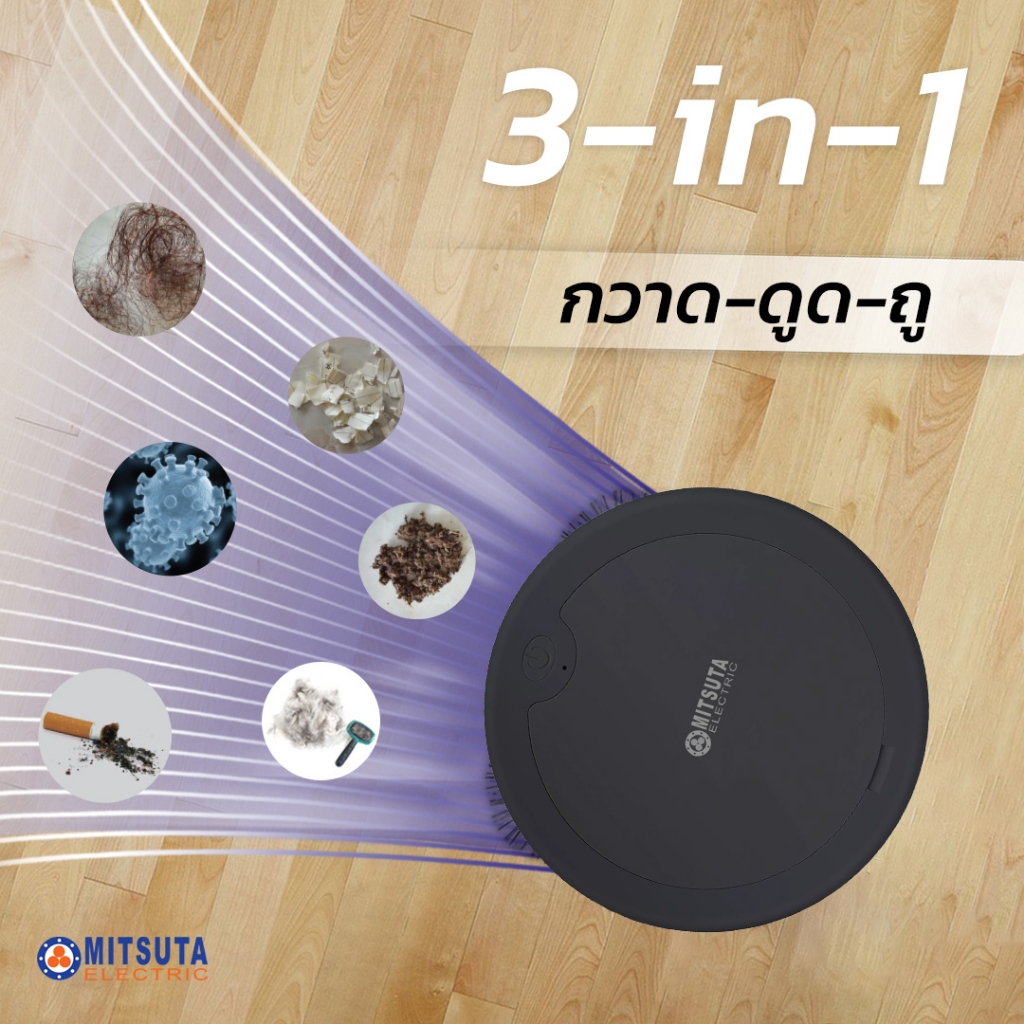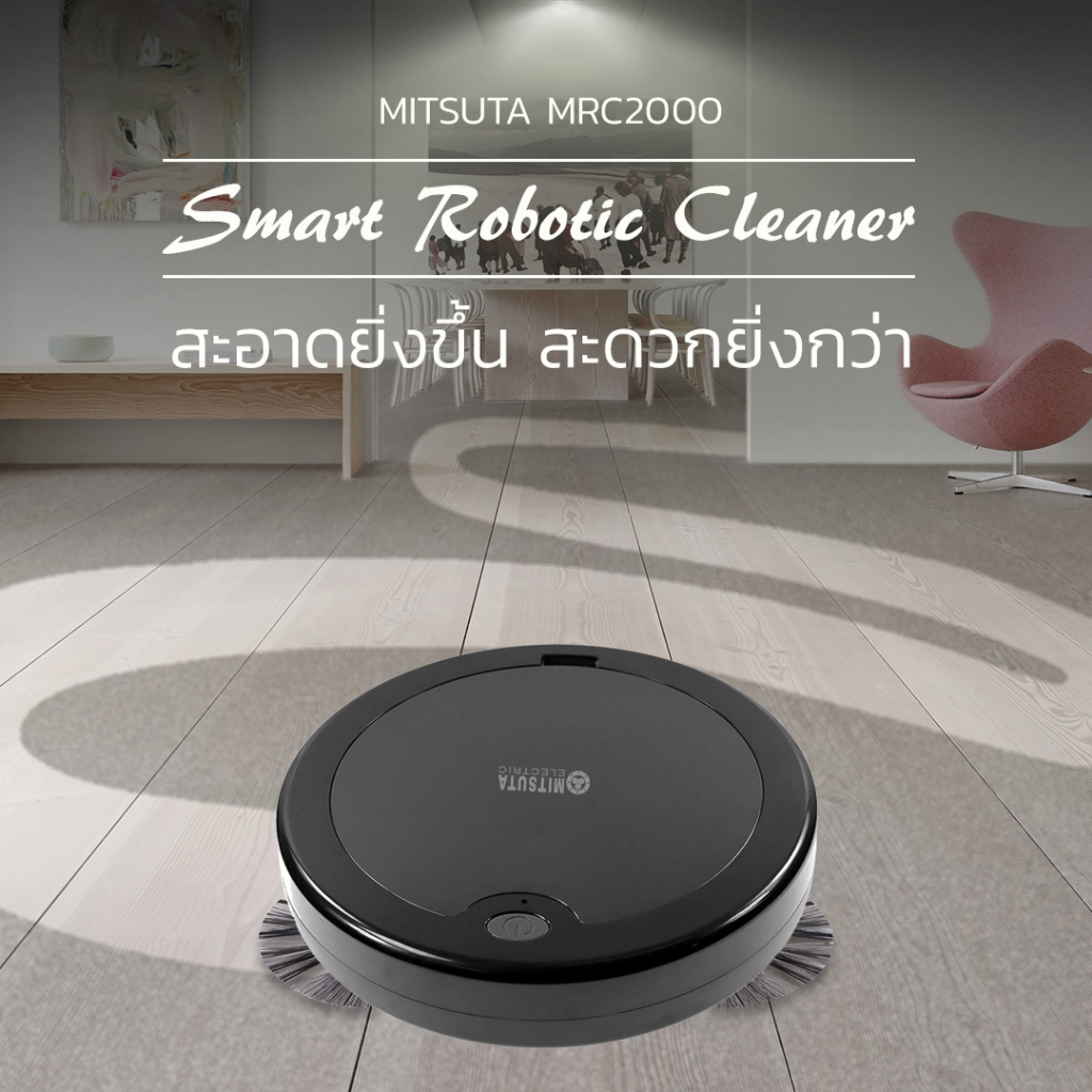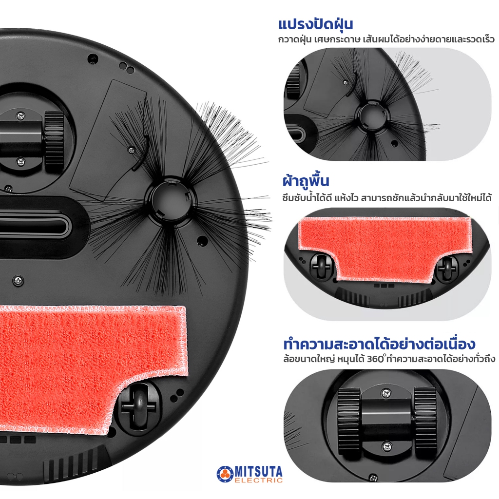 [NEW!] MITSUTA หุ่นยนต์ดูดฝุ่น-ถูพื้นอัตโนมัติ รุ่น MRC2000 (Black) ฟรีผ้าถูพื้น 2 ผืน