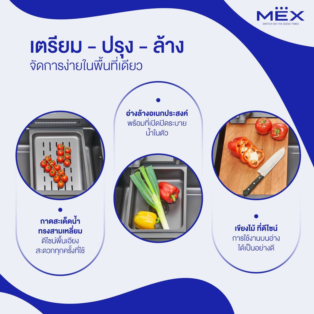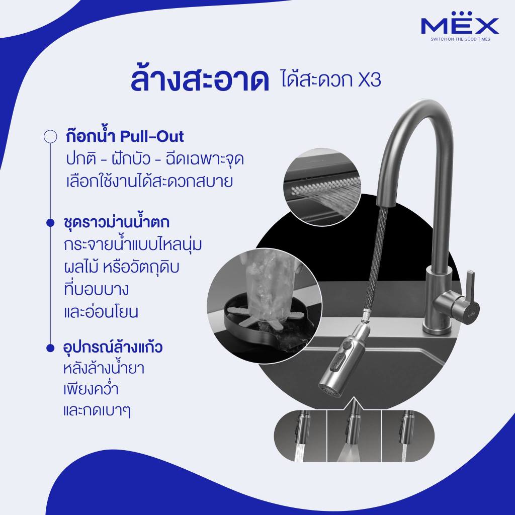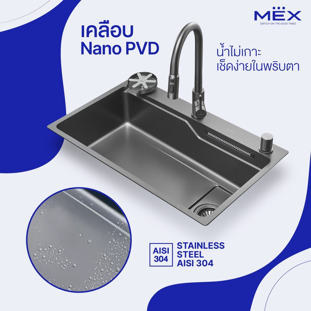 MEX รุ่น SM761GFGM อ่างล้างจาน 1 หลุม ขนาด 76 x 47 สเตนเลส สตีล AISI 304