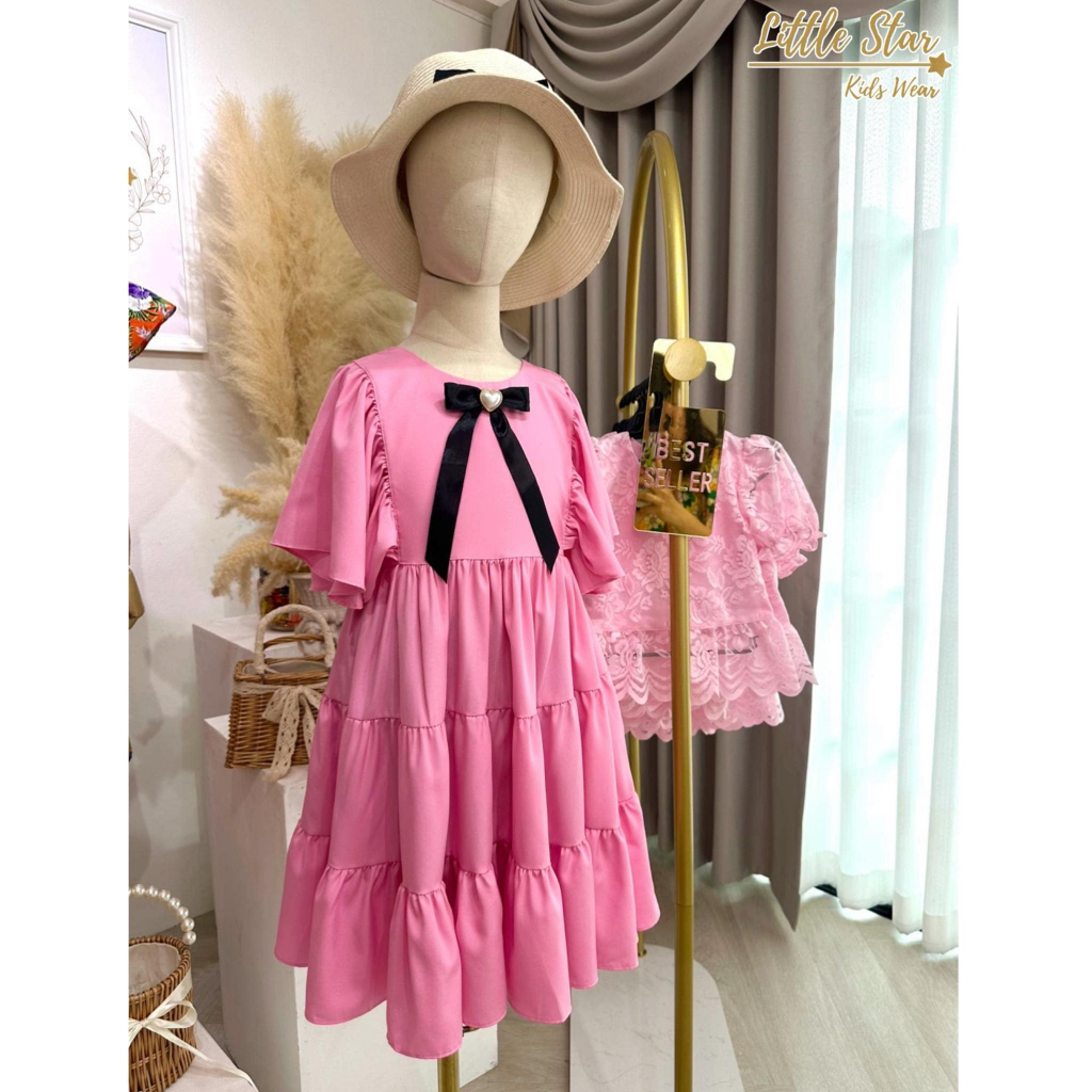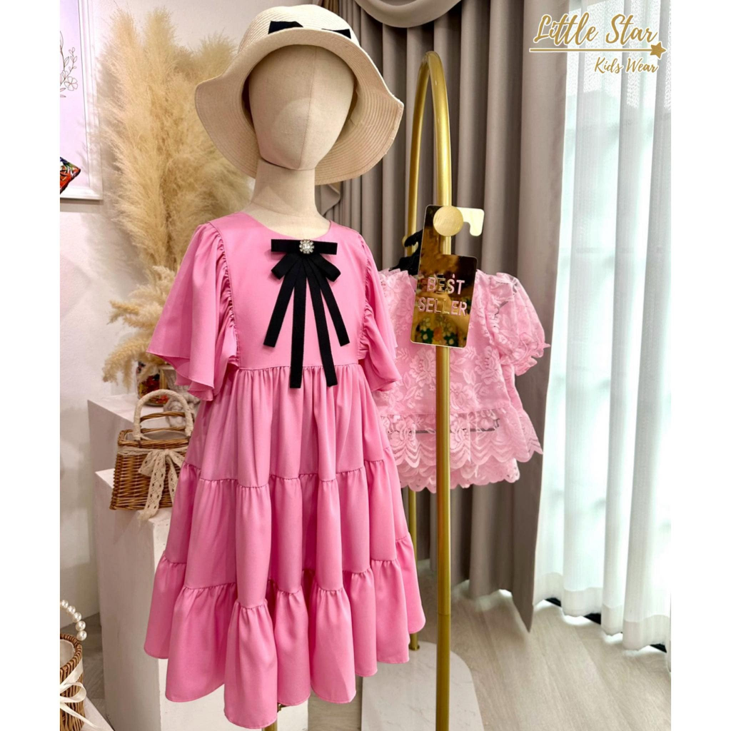 ⭐️Littlestar👧🏻เดรสกระโปรงยาว3ชั้น แขนปีกผีเสื้อ GMB0640