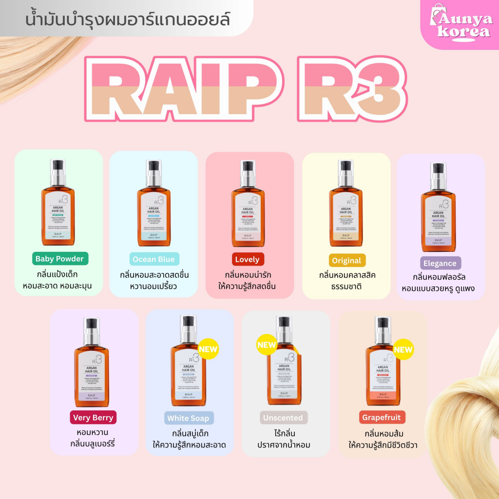 พร้อมส่ง‼️แท้100%✅Raip R3 Argan Hair Oil ออยบำรุงผมเรียบเนียน100ml.