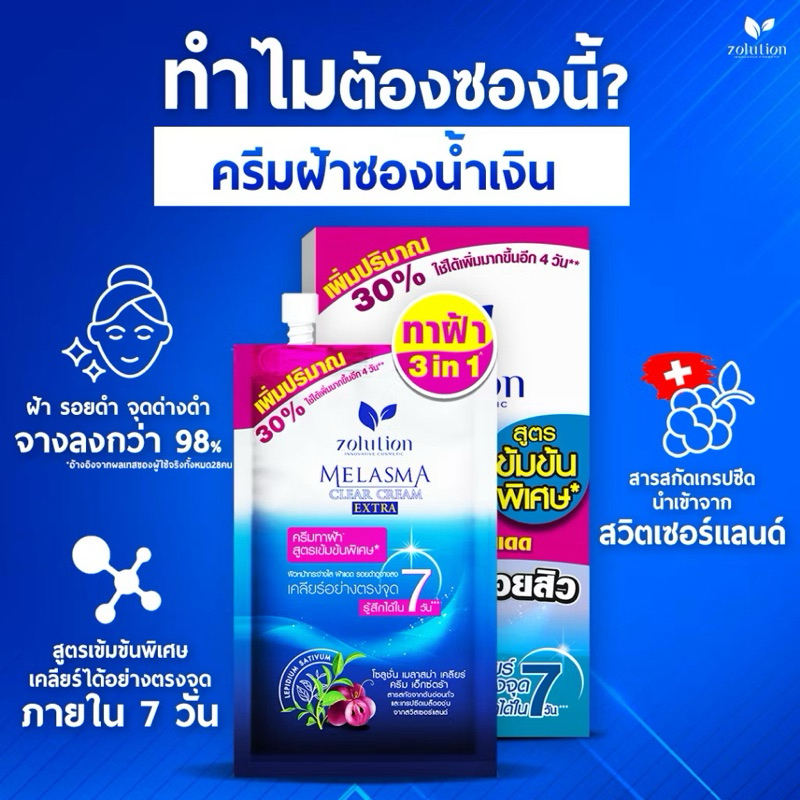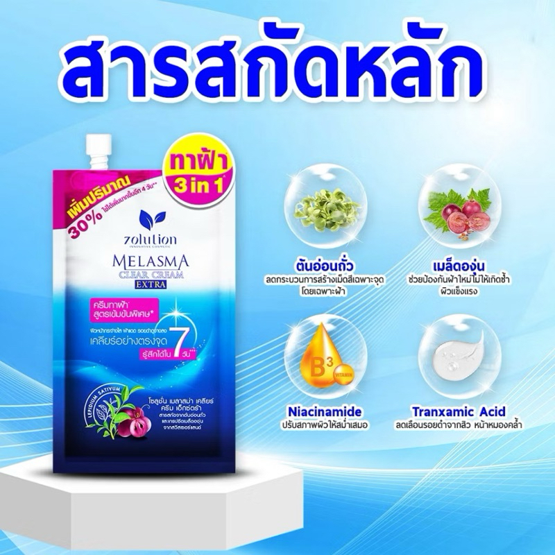 (ซอง) Zolution โซลูชั่น เมลาสม่า เคลียร์ ครีม เอ็กซ์ตร้า ทาฝ้า รอยดำ รอยสิว