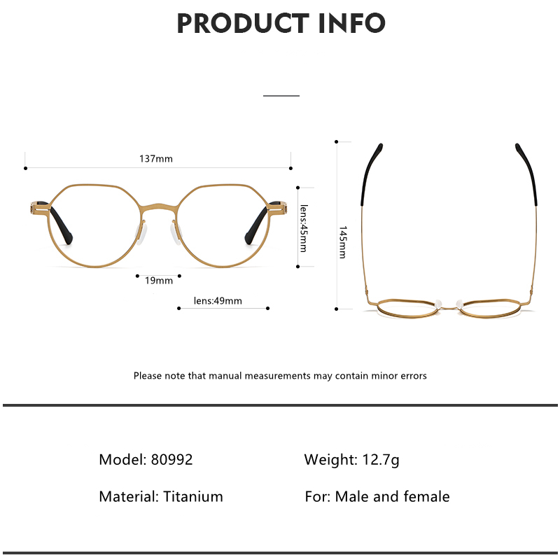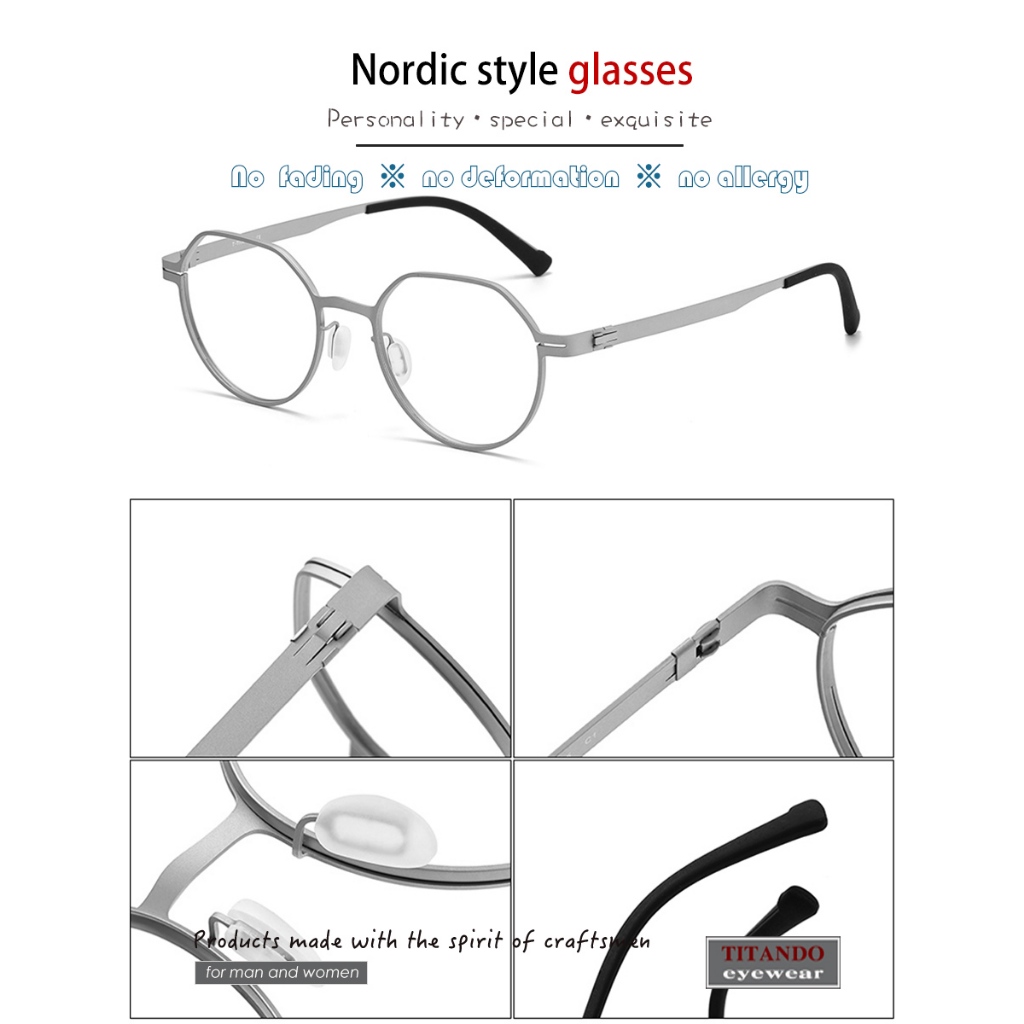 สไตล ์ อุตสาหกรรมเยอรมันดีไซน ์ ไร ้ สกรูกรอบแว ่ นตาน ้ ําหนักเบาและบางวัดไทเทเนียมบางเฉียบสําหรับผู ้ ชายและผู ้ หญิงแว ่ นตารูปมงกุฎ 80992