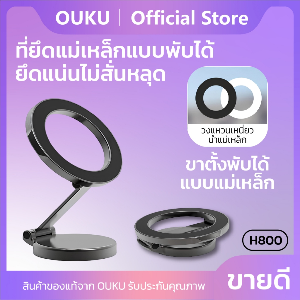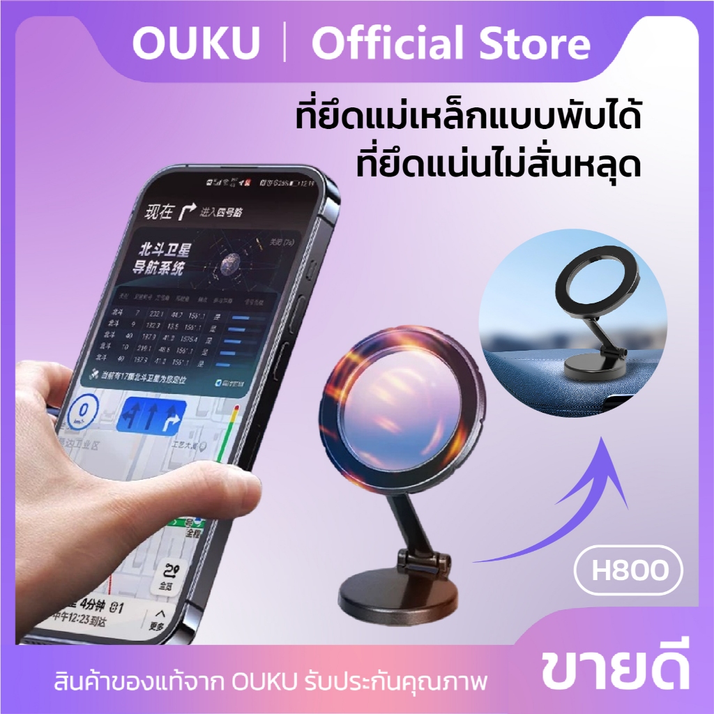 ใหม่!! OUKU รุ่น H800 ที่ยึดโทรศัพท์แบบแม่เหล็ก Fold magnetic holder สำหรับติดคอลโซล/กระจกรถยนต์ ยึดแน่น ทนทาน พร้อมส่ง