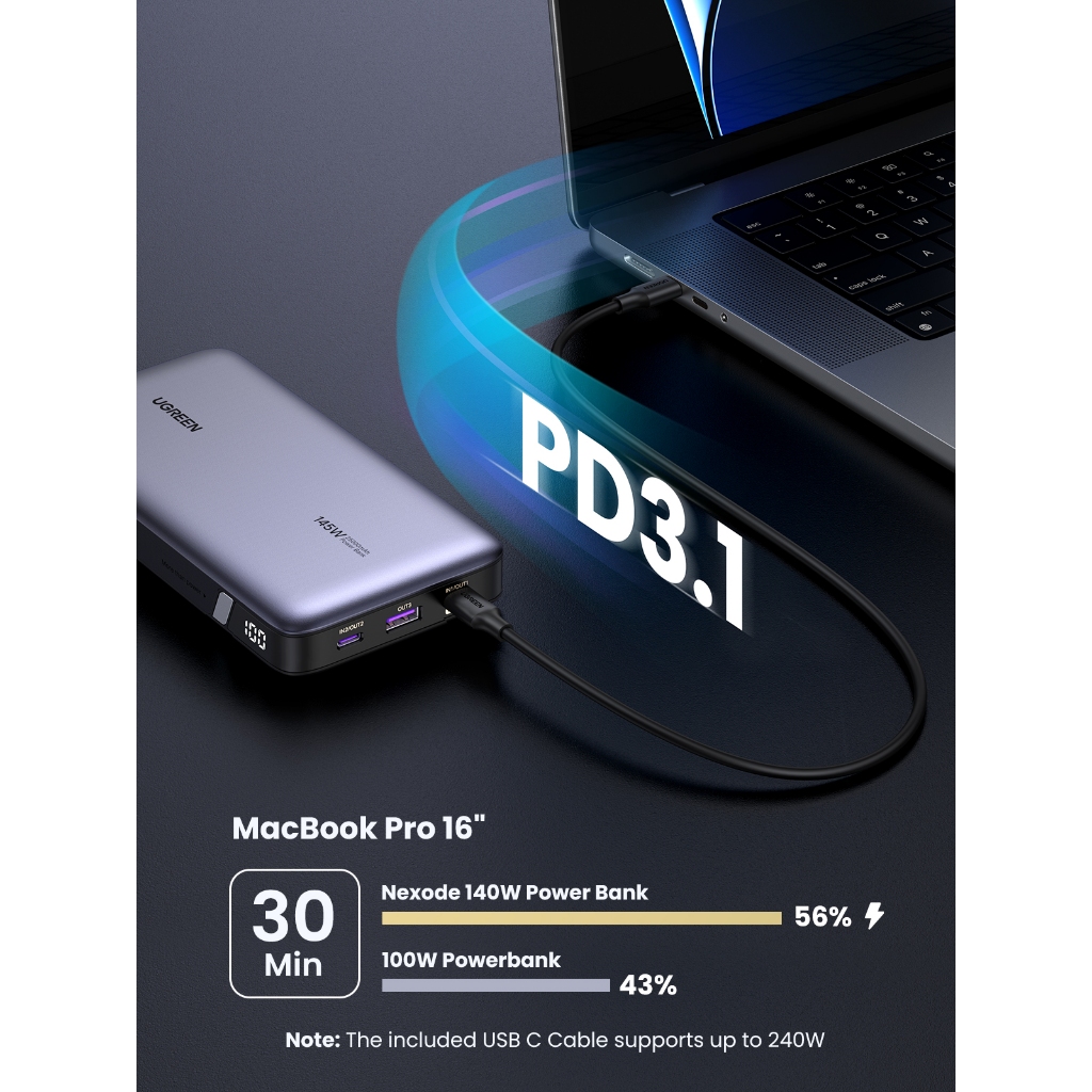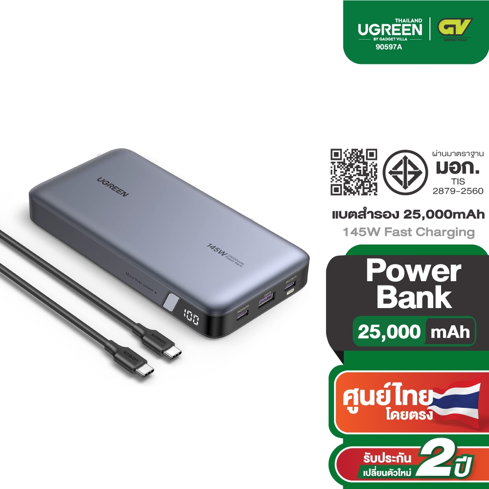 [ลดเหลือ 1968] Ugreen Power Bank แบตสำรอง 25000mAh แบบพกพา พาวเวอร์แบงค์ชาร์จเร็ว PD 145W Fast Charging