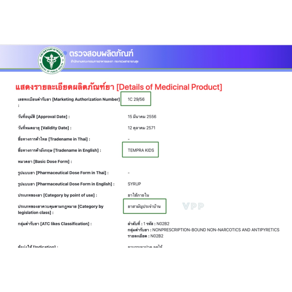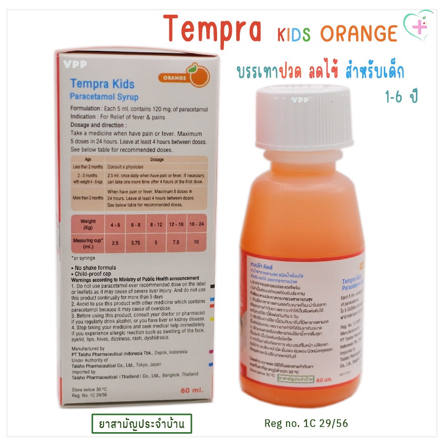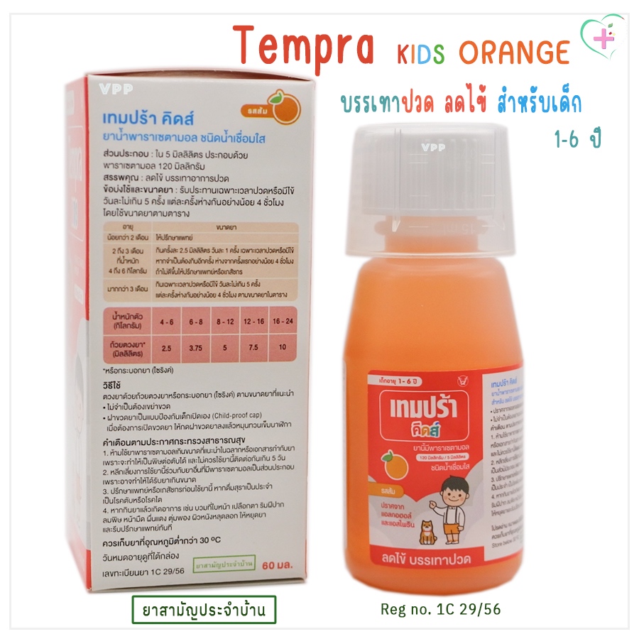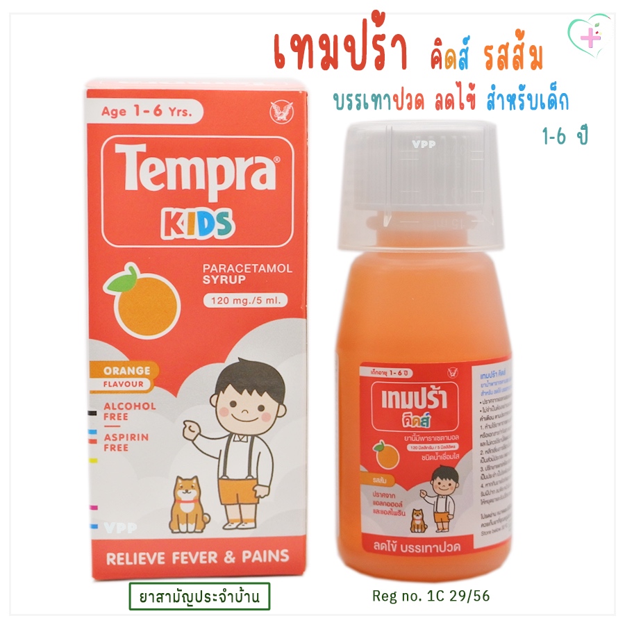 Tempra Kids เทมปร้า คิดส์ ส้ม/สตรอเบอรี่ ยาน้ำพาราเซตามอล 120 มก.บรรเทาปวด ลดไข้ สำหรับเด็กอายุ 1-6 ปี ยาสามัญประจำบ้าน