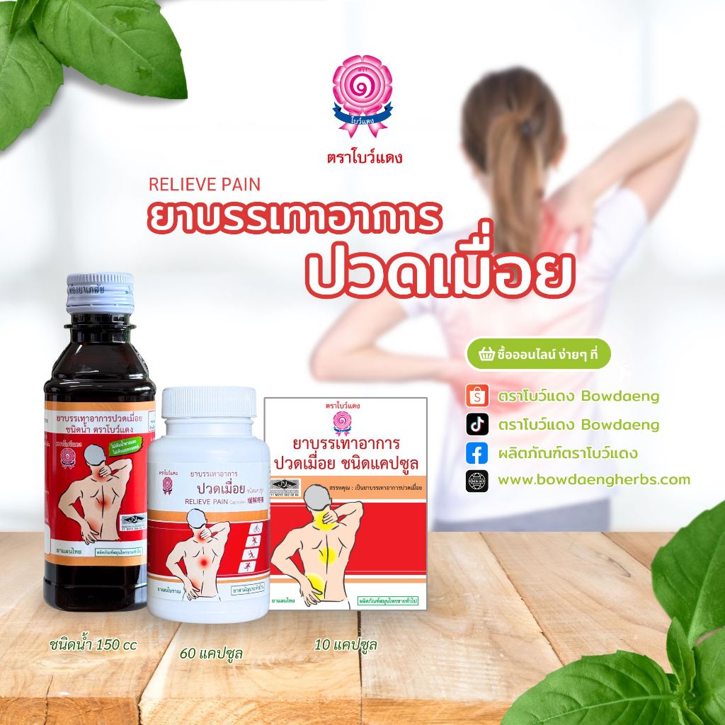ยาบรรเทาอาการปวดเมื่อย ตราโบว์แดง (60 แคปซูล)