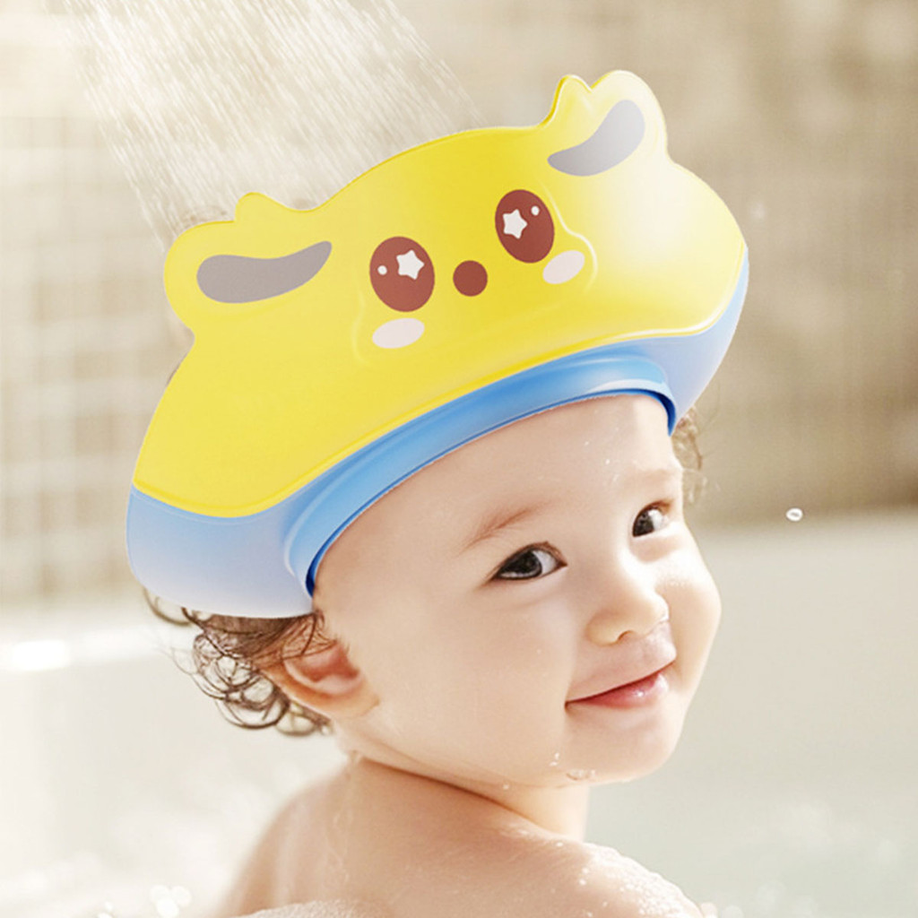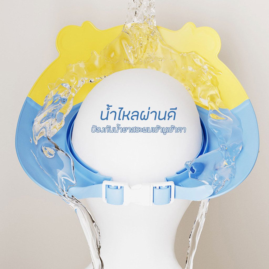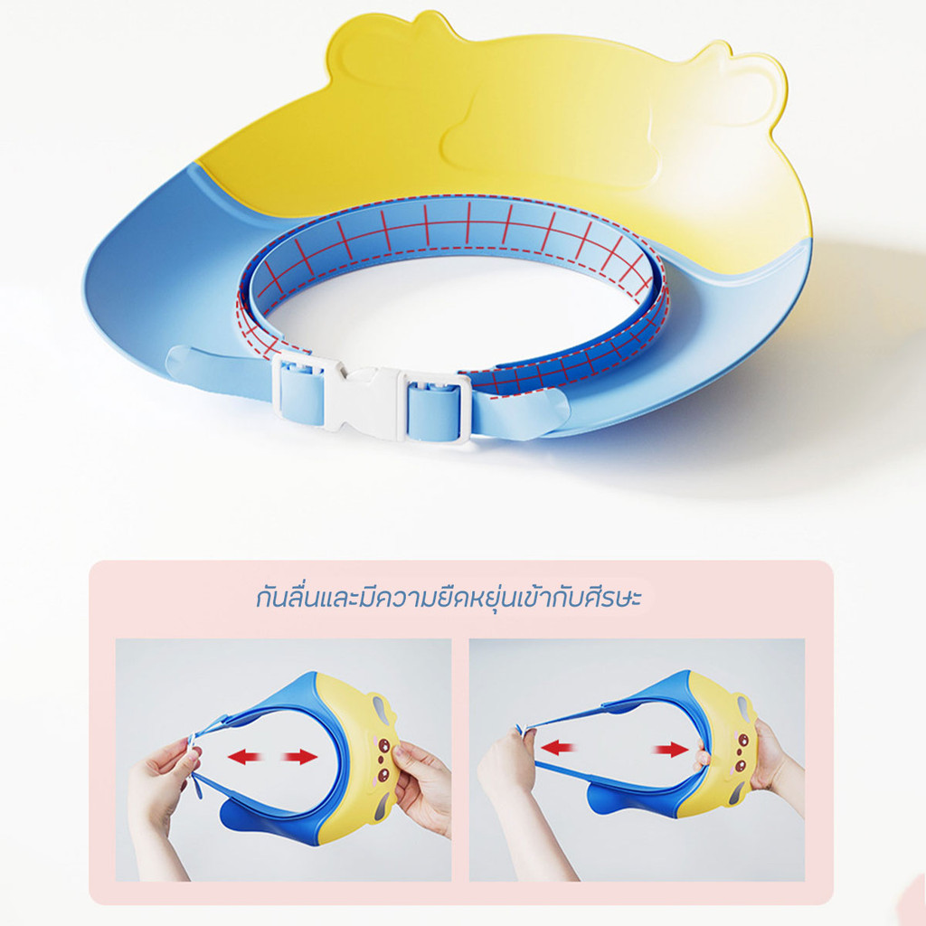 หมวกอาบน้ำเด็ก หมวกป้องกันแชมพูเข้าตาเด็ก ลายน่ารัก แบบปรับสายได้