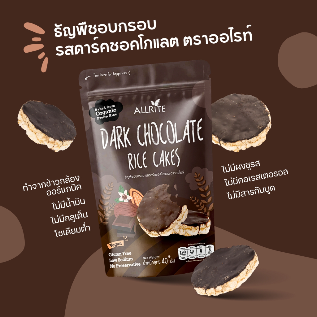 ALLRITE Dark Chocolate Rice Cakes 40g ธัญพืชอบกรอบรสดาร์คชอคโคแลต