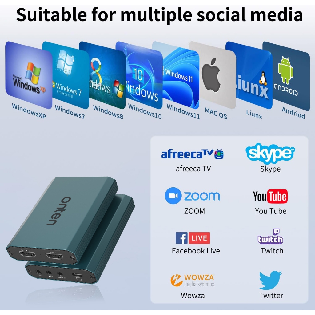 ONTEN OTN332 Audio Video Capture Card 1080P/60FPS แคปเจอร์การ์ด ต่อกล้อง ไลฟ์สด สตรีม แคสเกมส์ HDMI