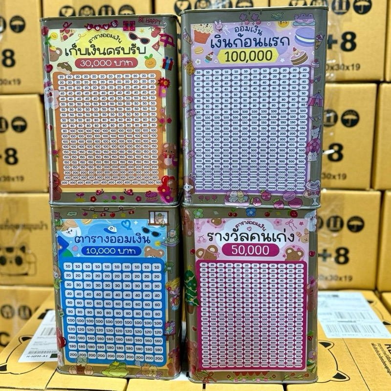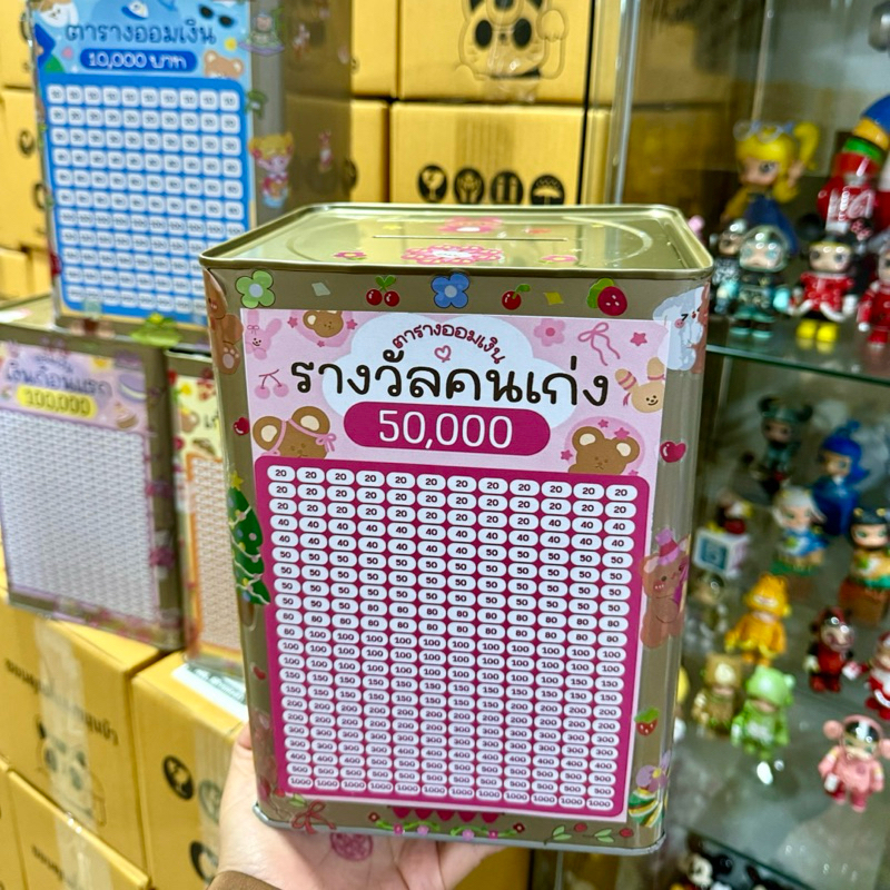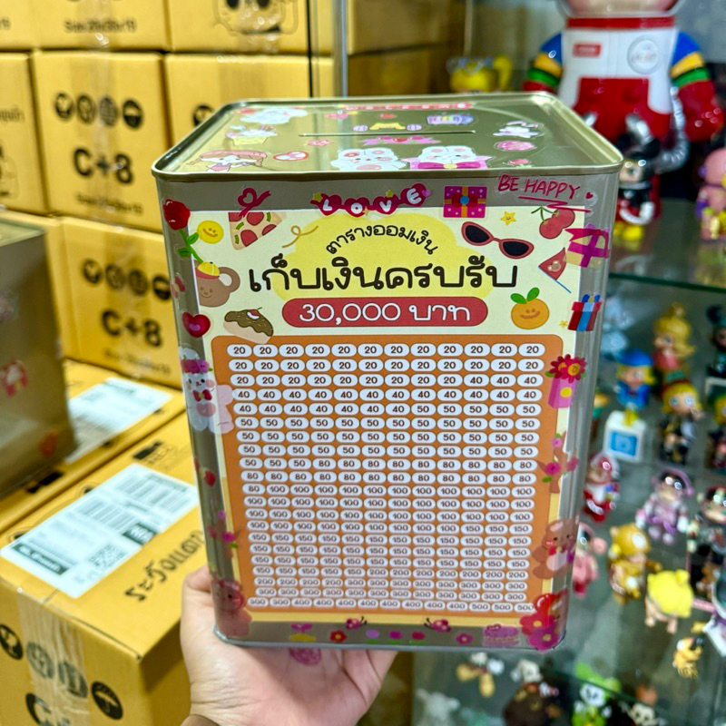 กระปุกออมสินปี๊บ 23 CM พร้อมตารางออมและสติกเกอร์