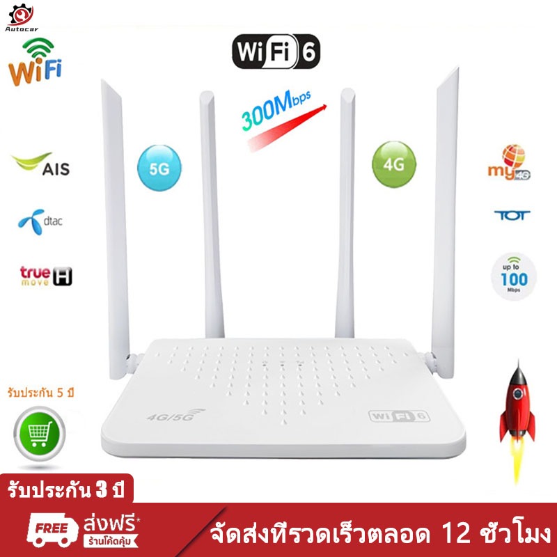เร้าเตอร์ใส่ซิม เราเตอร์ 4G/5G Router wifi 300 Mbps 2.5Ghz ใช้ได้กับซิมทุกเครือข่าย เสียบใช้เลย ไม่ติดตั้ง รับประกัน 3ปี