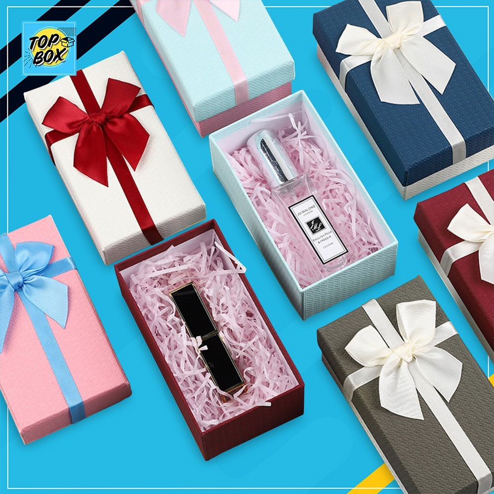 กล่องของขวัญ ฝามีโบว์คาด ขนาด 7x13x5 cm (แพ็ค 1 ใบ)