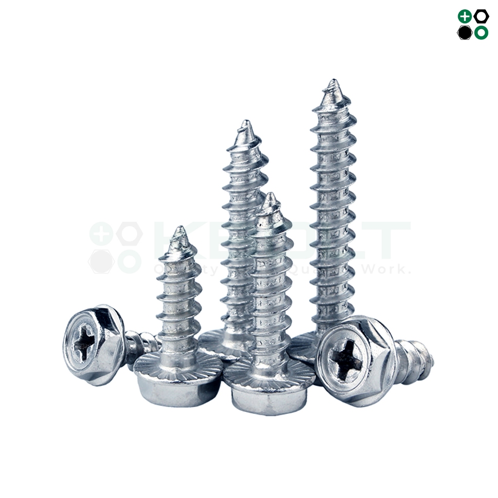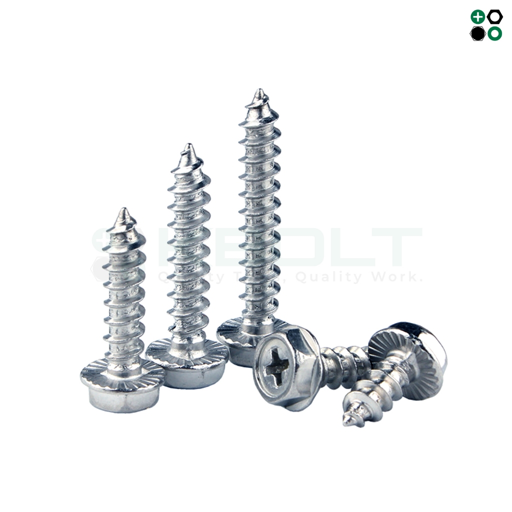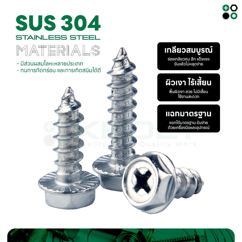 น็อต-สกรู หัวหกเหลี่ยมติดแหวน รูขันแฉก เกลียวปล่อย สเตนเลส304 M3,M4,M5,M6 Hex Washer Head Tapping