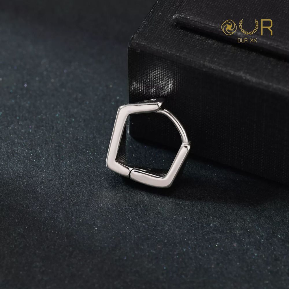 Our XX Neat ต่างหูห่วงเจาะลายมินิมอล Hoop earrings วัสดุไทเทเนียมเกรดเครื่องมือแพทย์ (P169)