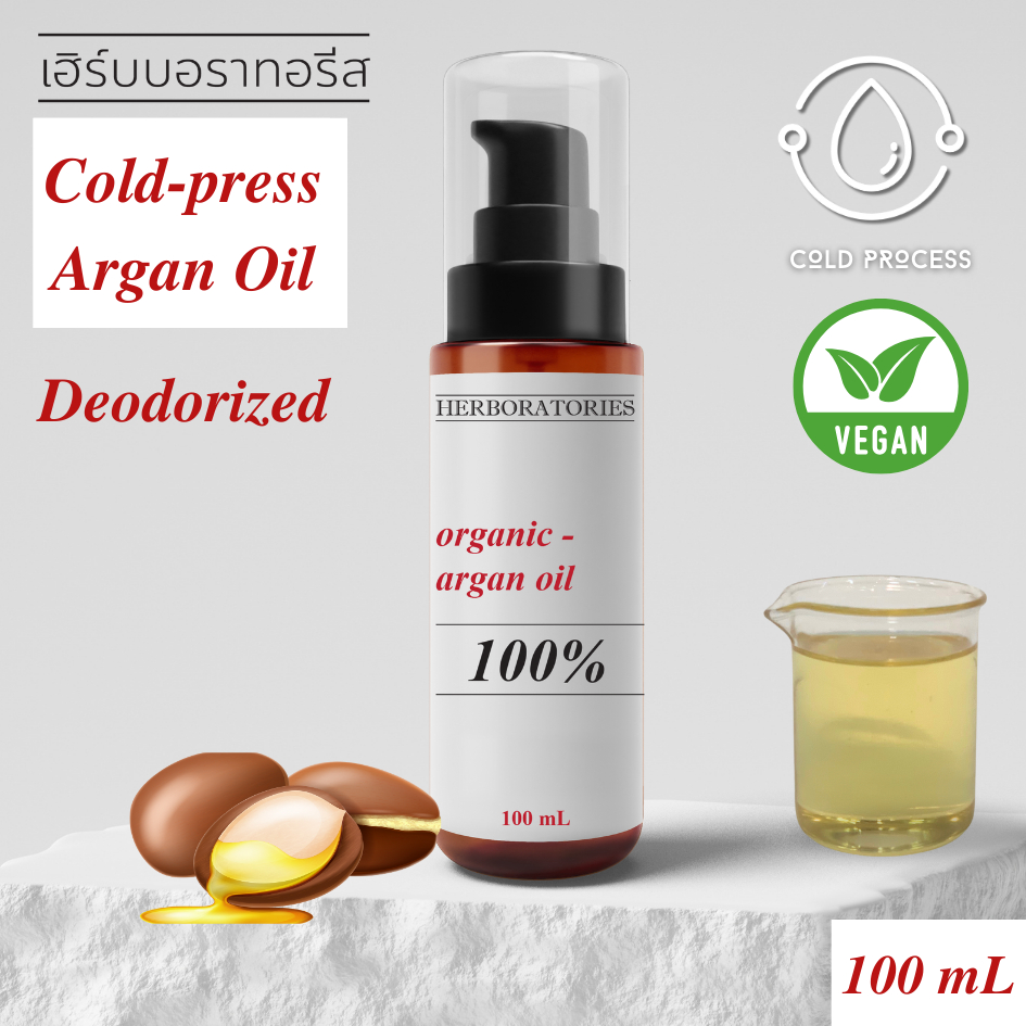 HERBORATORIES - 100% อาร์แกนออยล์ สกัดเย็น สูตร ไร้กลิ่น Cold-pressed Argan Oil 100% (Deodorized)