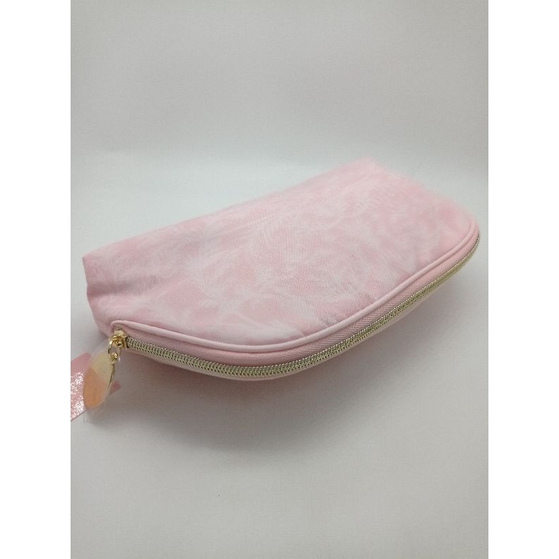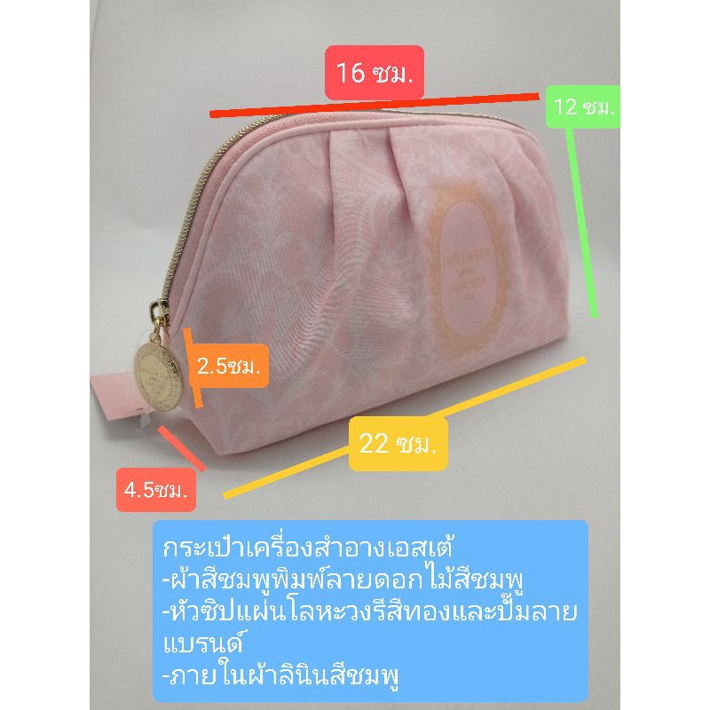 กระเป๋าเครื่องสำอางเอสเต้ ผ้าสีชมพูพิมพ์ลายดอกไม้สีชมพู