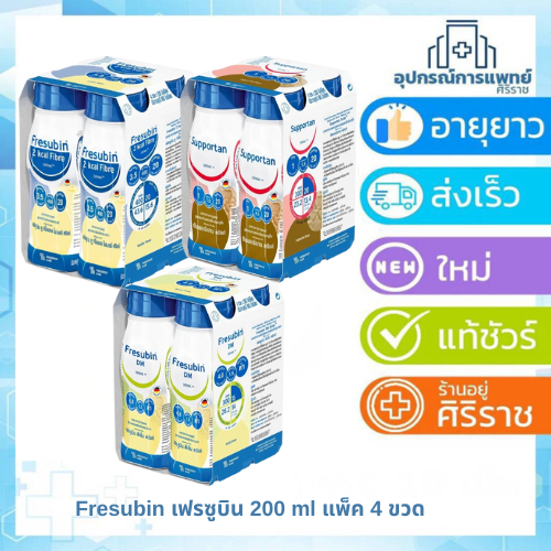 Fresubin Supportan 4 ขวด ซัพพอร์แทน ดริงค์Fresubin DM/ 2kcal เฟรซูบิน ดีเอ็ม อาหารสูตรครบถ้วน 200 ml.