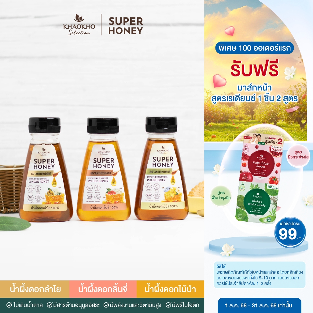 [กดซื้อ 2 ชิ้น 229.-] อร่อยเลือกได้ เขาค้อ ซีเล็คชั่น สเปรดผลไม้ (200 กรัม) แยม แคลต่ำและน้ำผึ้งแท้ 100%