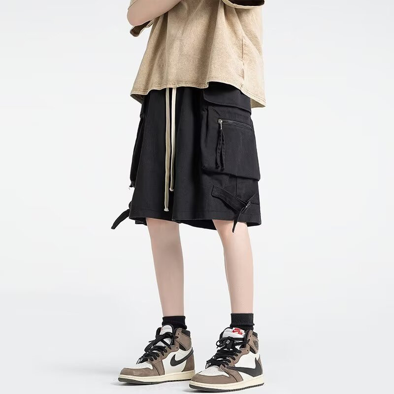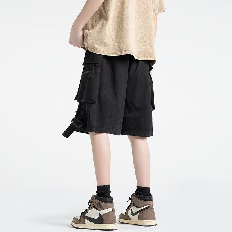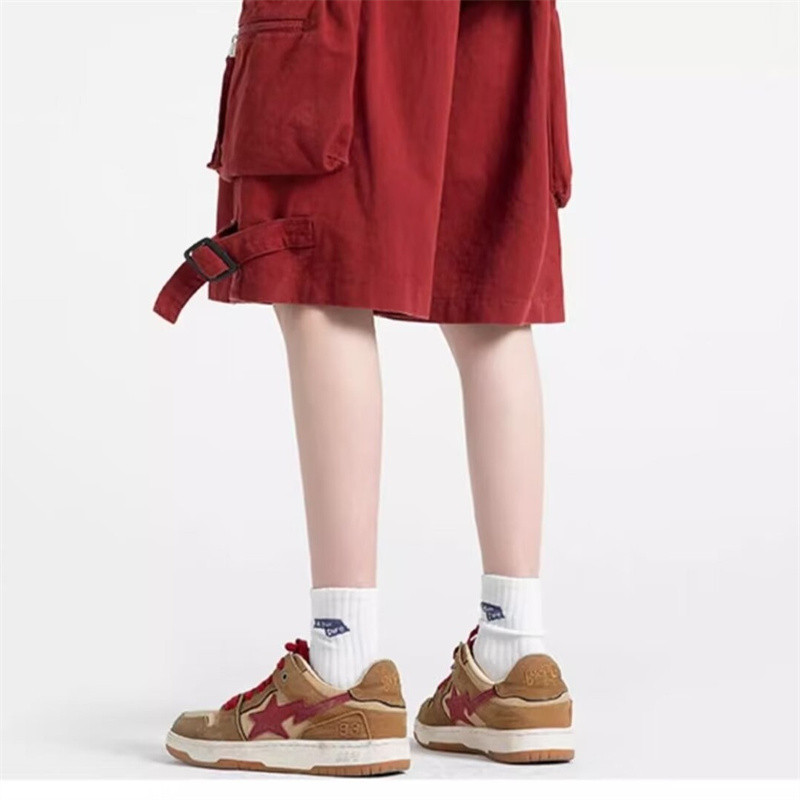 Bonnie Cathy Bonnie Cathy Summer American high street กางเกงขาสั้นคาร์โก้ลําลองผู้ชายกางเกงขากว้างตรงอินเทรนด์กางเกงห้าจุด