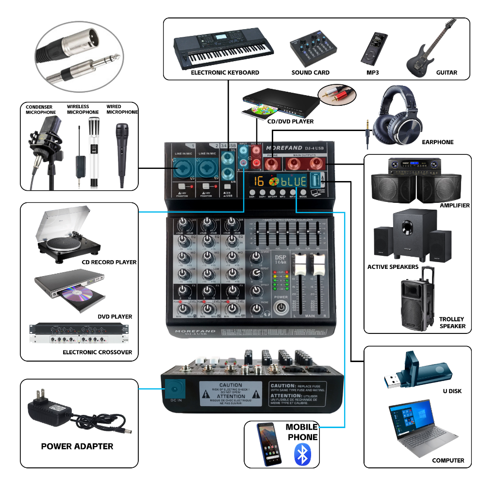 DJ4/6/8มิกเซอร์บลูทูธ อีคิวปรับเสียง มิกเซอร์เอฟเฟค,mixer(การบันทึกดิสก์ USBพร้อมฟังก์ชั่นการ์ดเสียง,พร้อมฟังก์ชั่น OTG)
