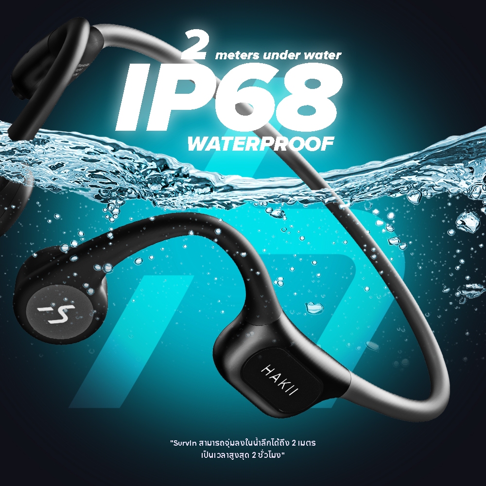[เก็บโค้ดส่งฟรี] Hakii รุ่น Survin หูฟังออกกำลังกาย หูฟังบลูทูธ MP3 ใส่ว่ายน้ำได้ มีเมมในตัว 64G ใส่เพลงได้ถึง2,000 เพลง