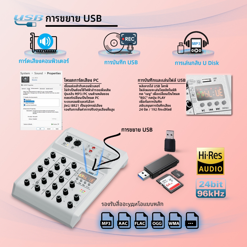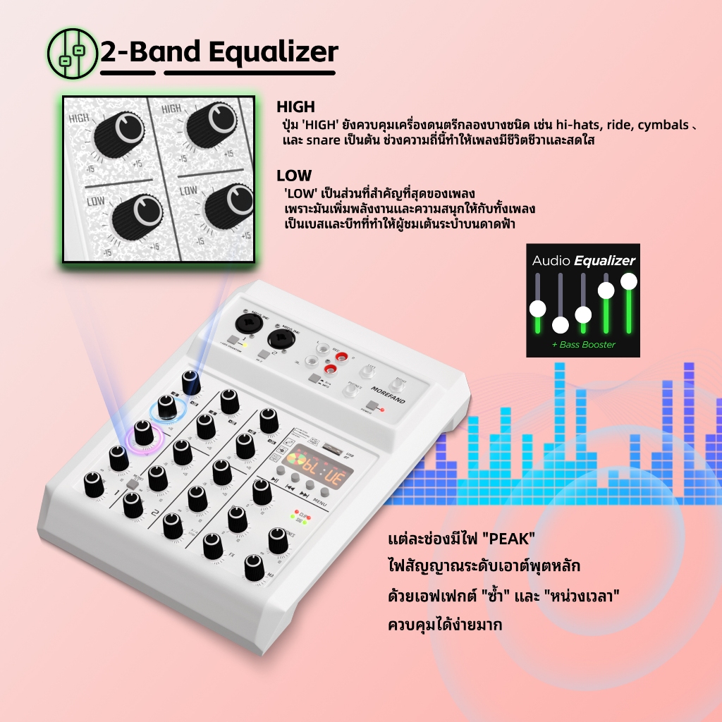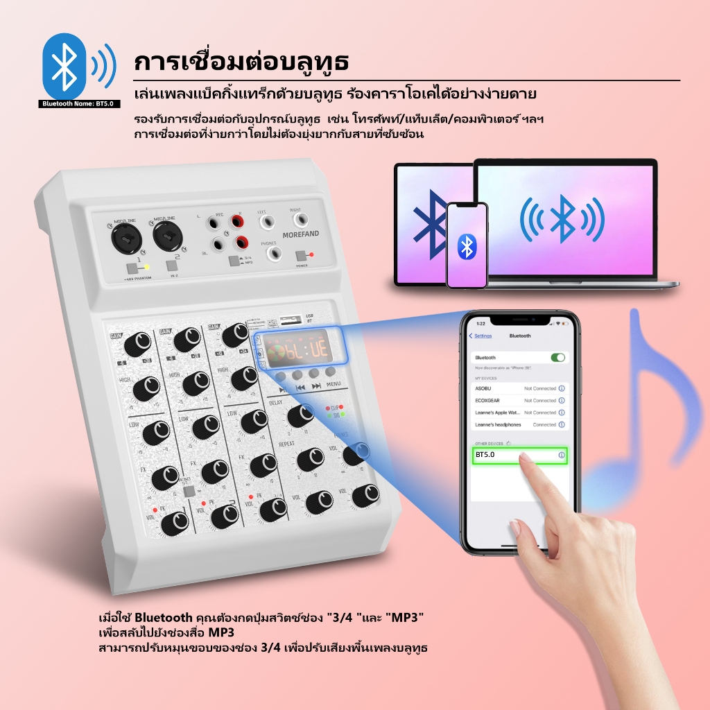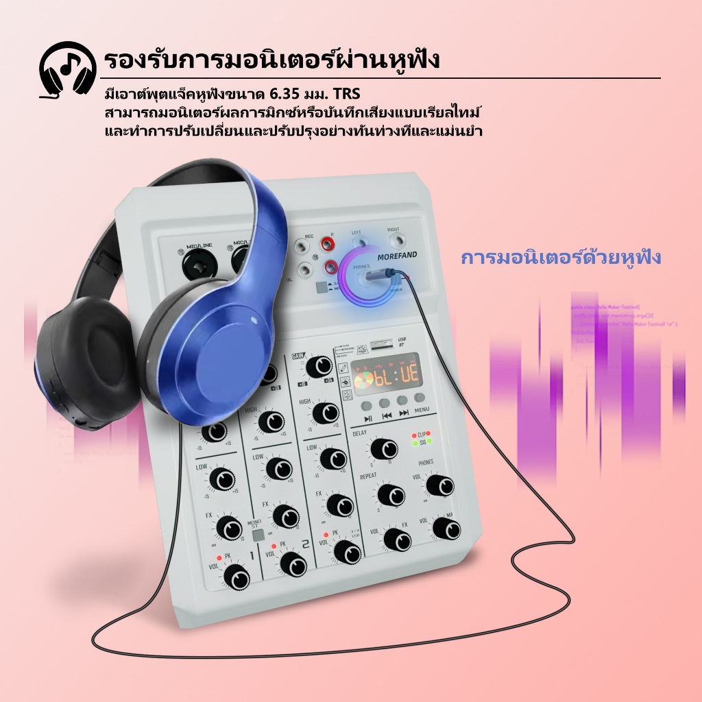 MINI Audio mixer เครื่องผสมเสียงมินิแบบพกพา สามารถใช้สำหรับเชื่อมต่อบลูทูธเล่น ตัวผสมเสียง
