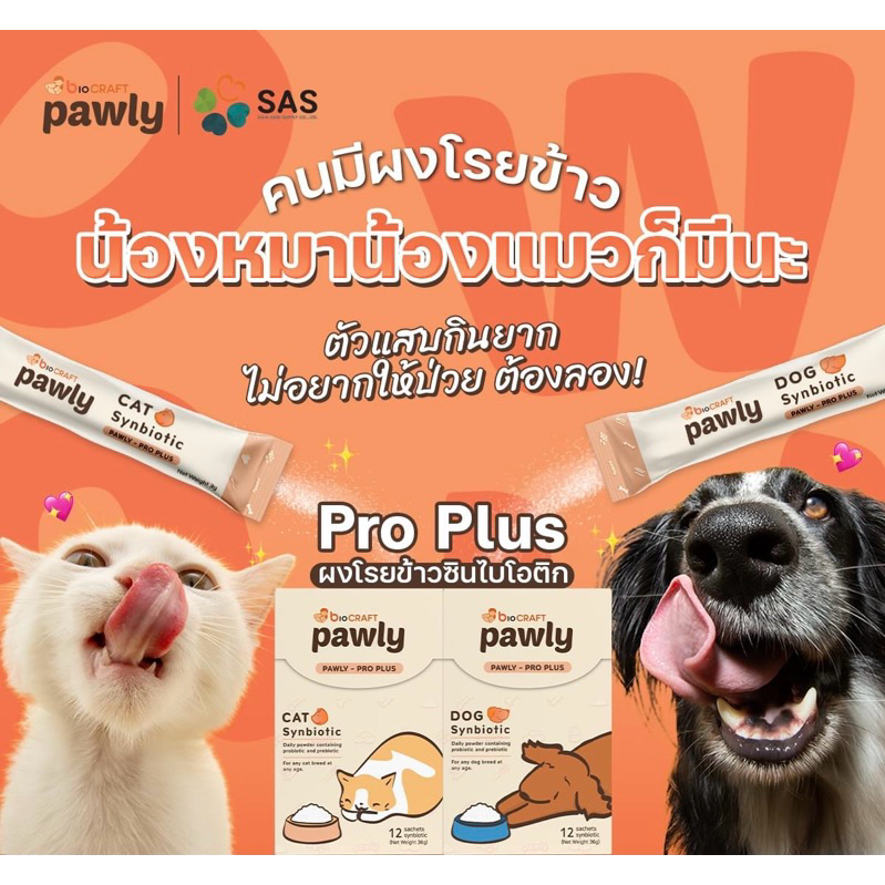 Pawly Pro Plus (กล่อง12ซอง) ผงโปรไบโอติกโรยอาหาร เสริมภูมิ-ลำไส้ สุนัขและแมว
