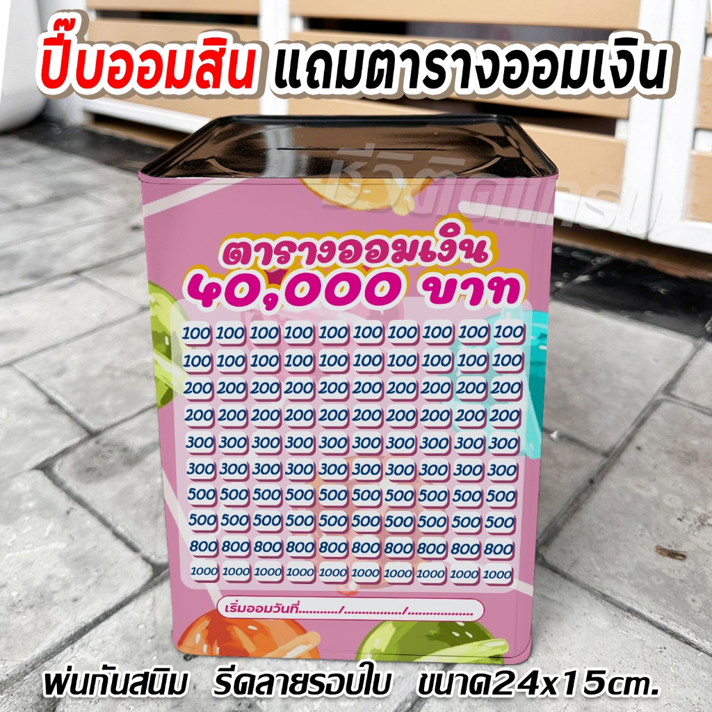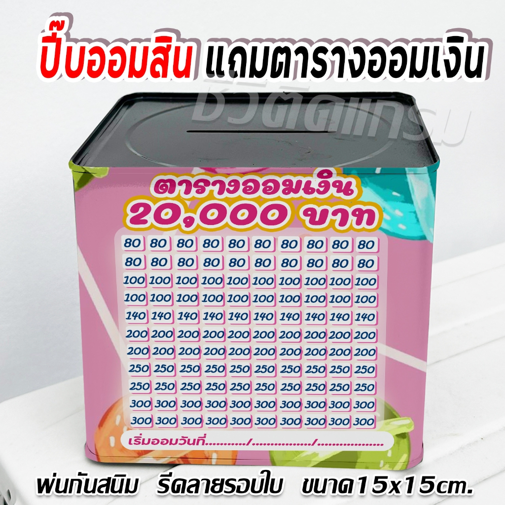 กระปุกออมสินปี๊บแถมฟรีตารางออมเงิน +สติกเกอร์ตกแต่ง ปี๊บออมสิน กันน้ำ รีดสติกเกอร์ทั้งใบ พ่นสีกันสนิม ขนาด 15 CM, 23 CM