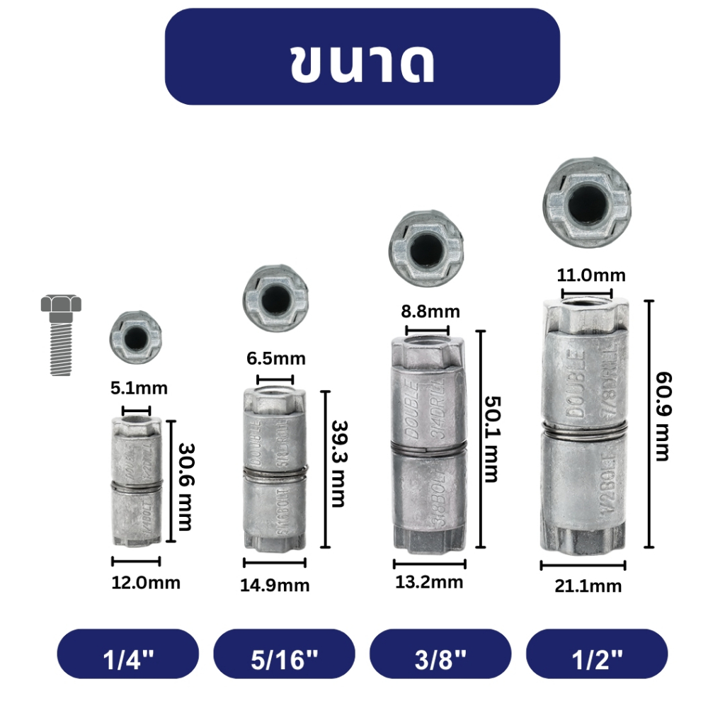 IEPERNG พุกตะกั่ว ปุ๊กตะกั่ว 1/4" 5/16" 3/8" 1/2" ยกกล่อง 45-250 ตัว Double Expansion Anchor