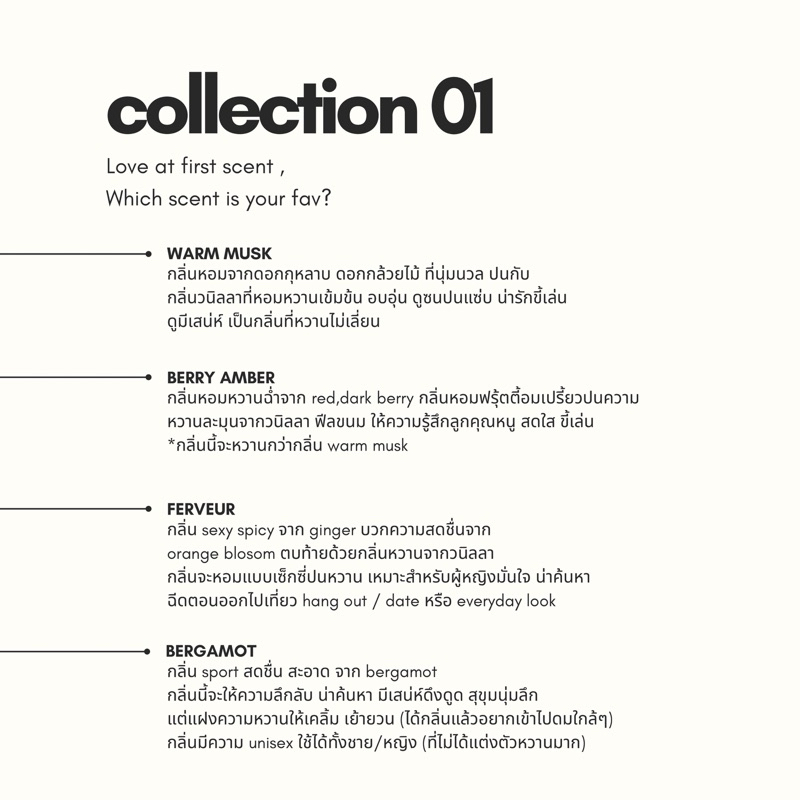 น้ำหอม Set EDP กลิ่น Warm Musk, Berry Amber, Ferveur, Bergamot 30ml.⭐️