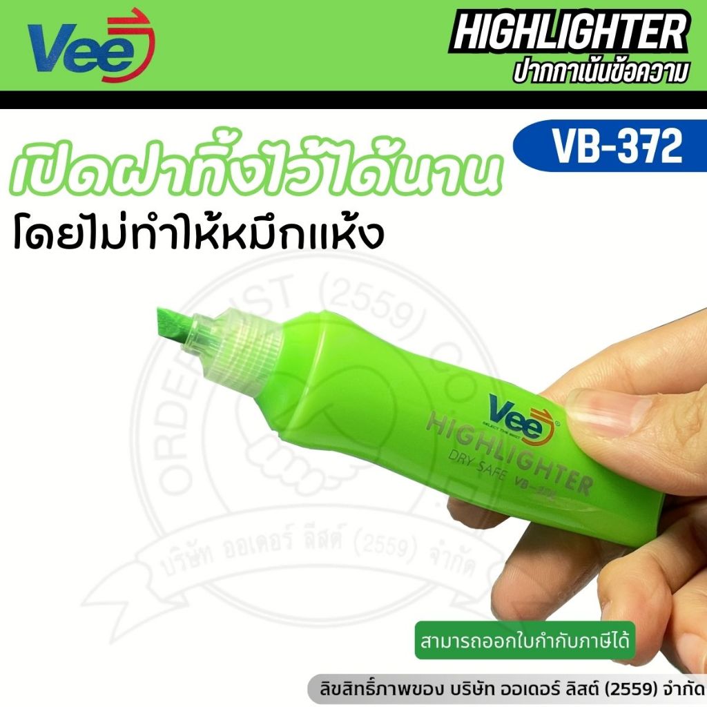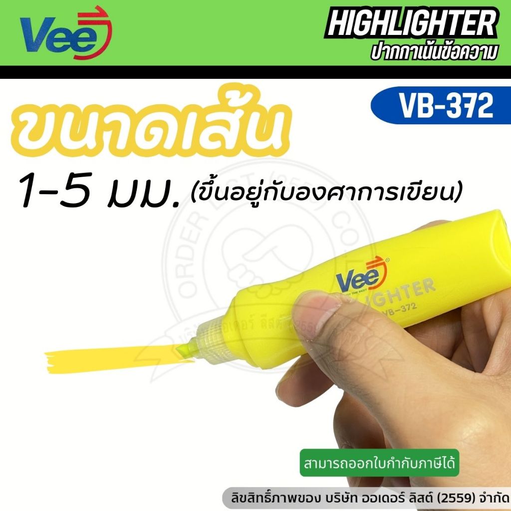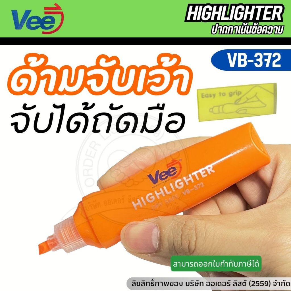 ปากกาเน้นข้อความ Vee ปากกาไฮไลท์ หัวตัด แห้งเร็ว สีสวย เครื่องเขียน รุ่น 372