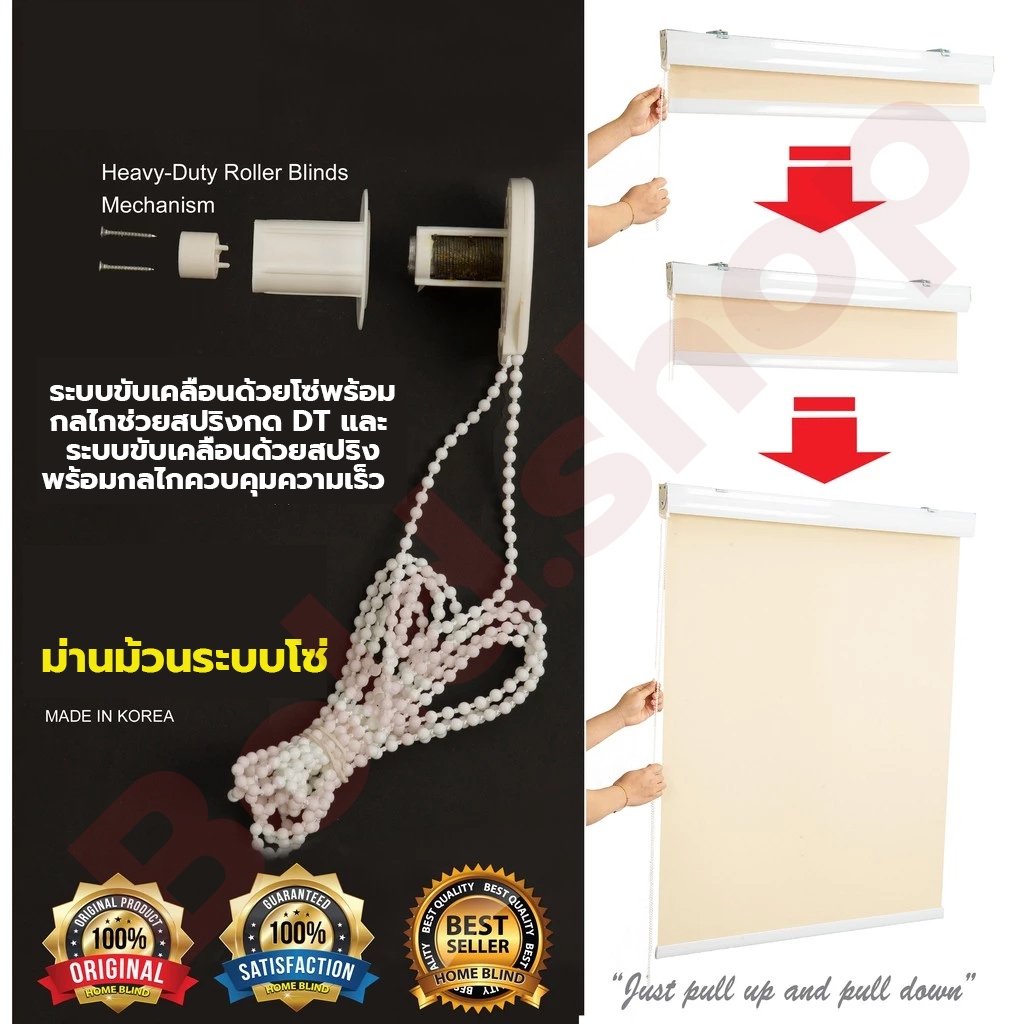 ม่านม้วนทึบแสง กันแสงUV100% วัสดุพรีเมี่ยมอย่างหนา มีกล่องบังรางในตัว ม่านม้วนหน้าต่าง ป้องกันฝุ่น ม่านม้วน