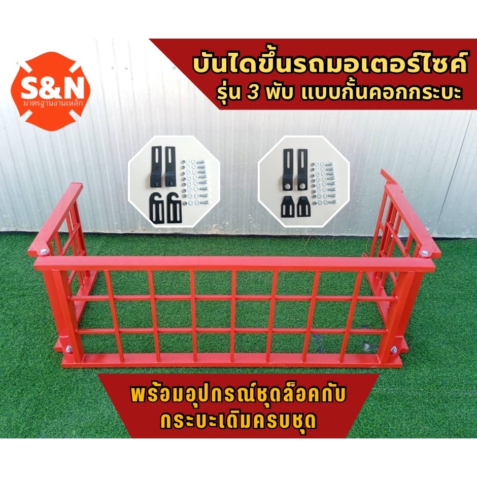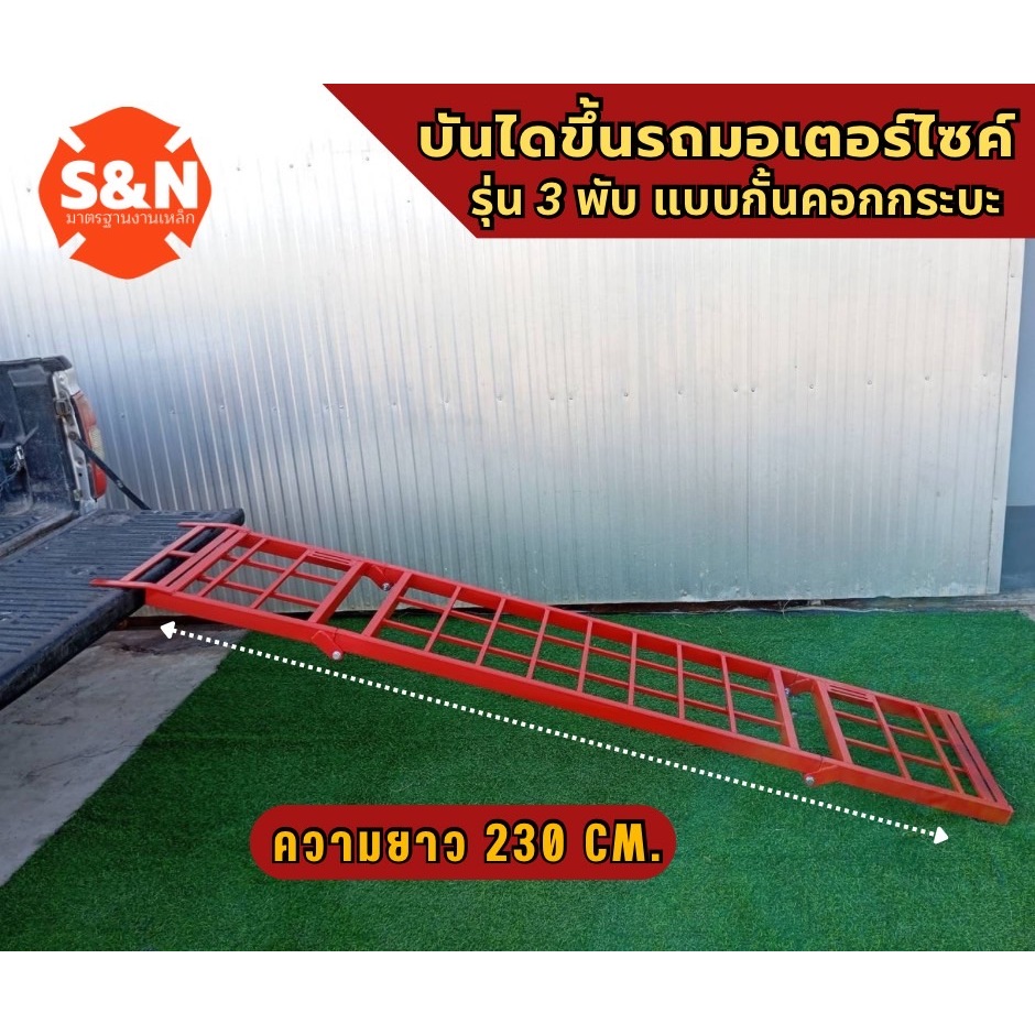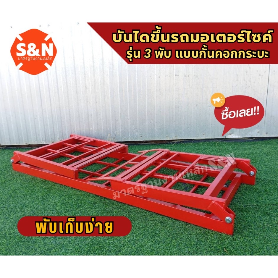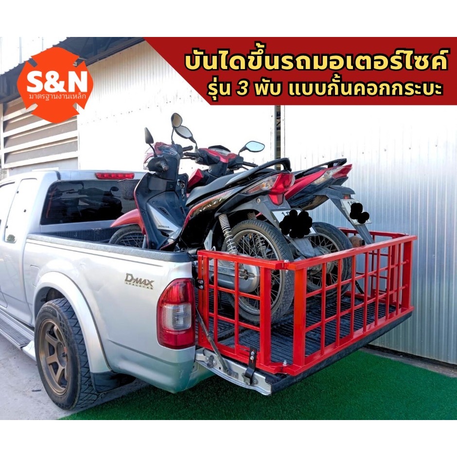 บันไดขึ้นรถมอเตอร์ไซค์ 3 พับ แบบกั้นคอกกระบะตัวล็อคตรงรุ่น รับน้ำหนัก 600 Kg มี4สีให้เลือก