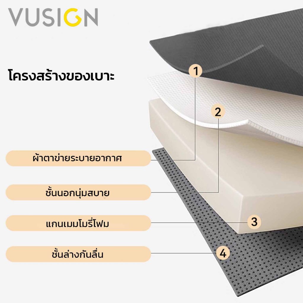 Vusign เบาะรองนั่งเก้าอี้ เบาะรองนั่งเพื่อสุขภาพ เมมโมรี่โฟม ลดแรงกดทับก้นกบ รองรับสรีระได้ Cushion